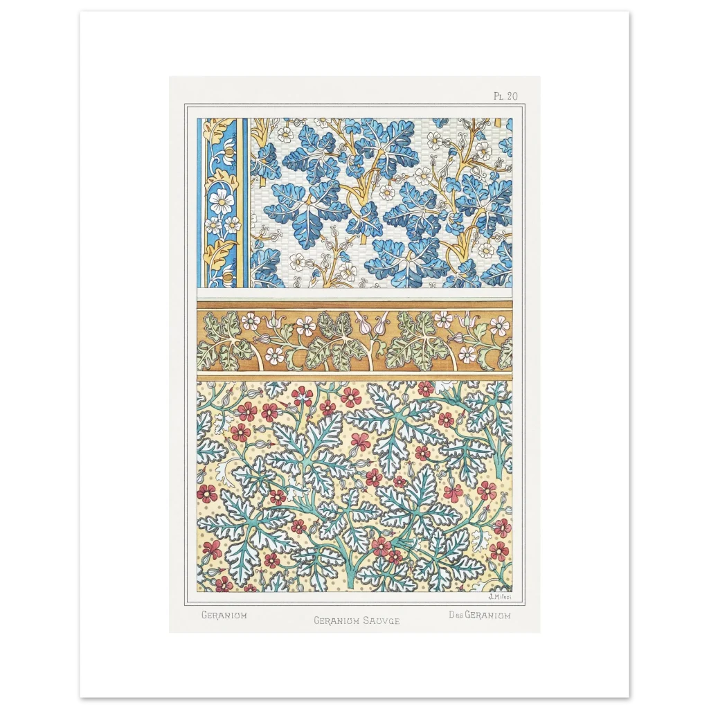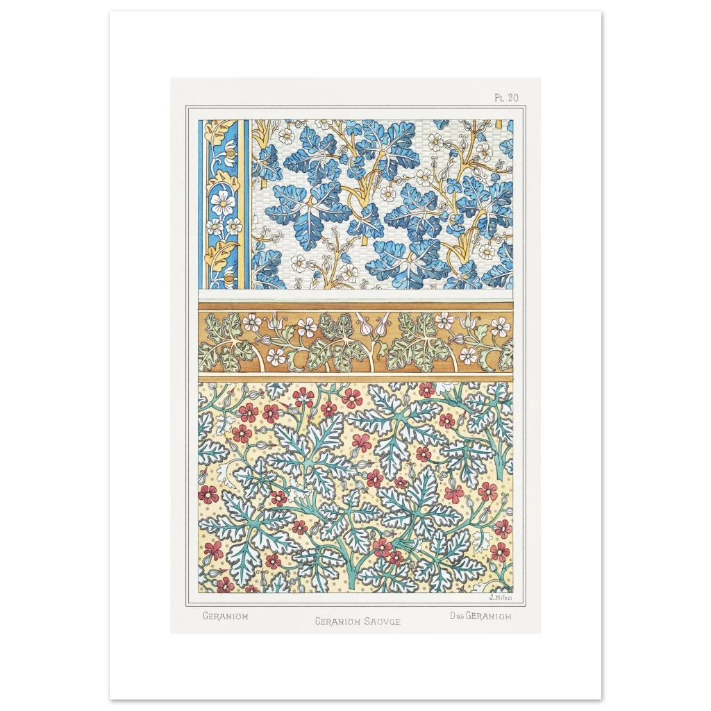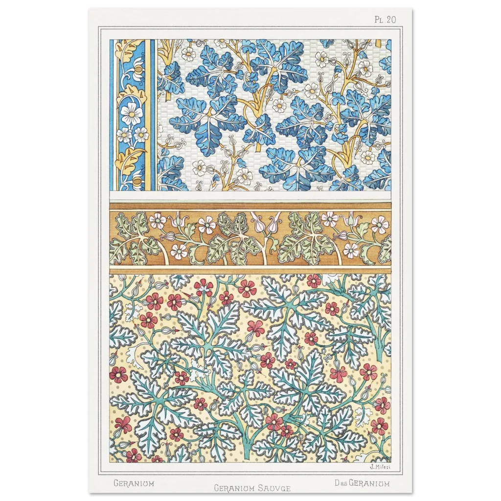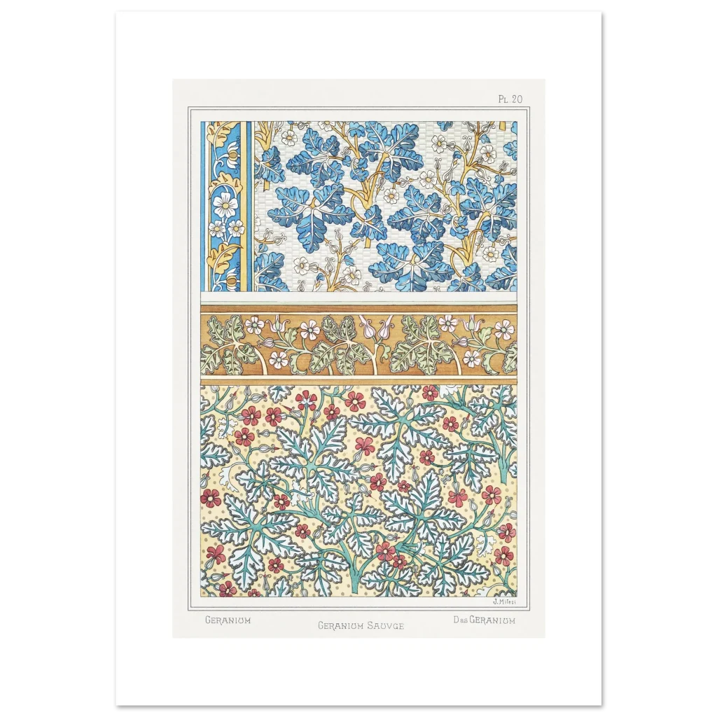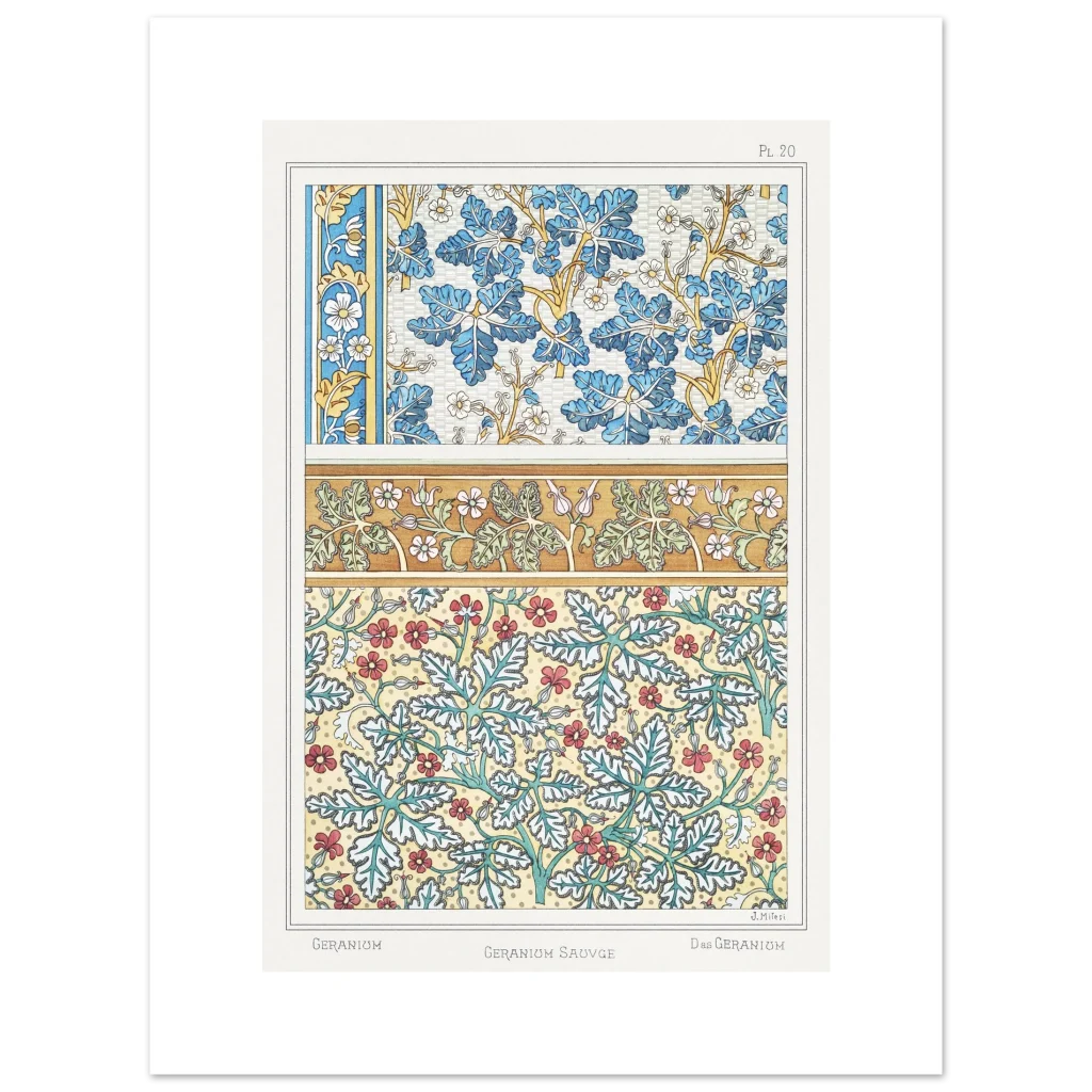Art Nouveau Geranium Floral Patterns – Premium Matte Paper Poster