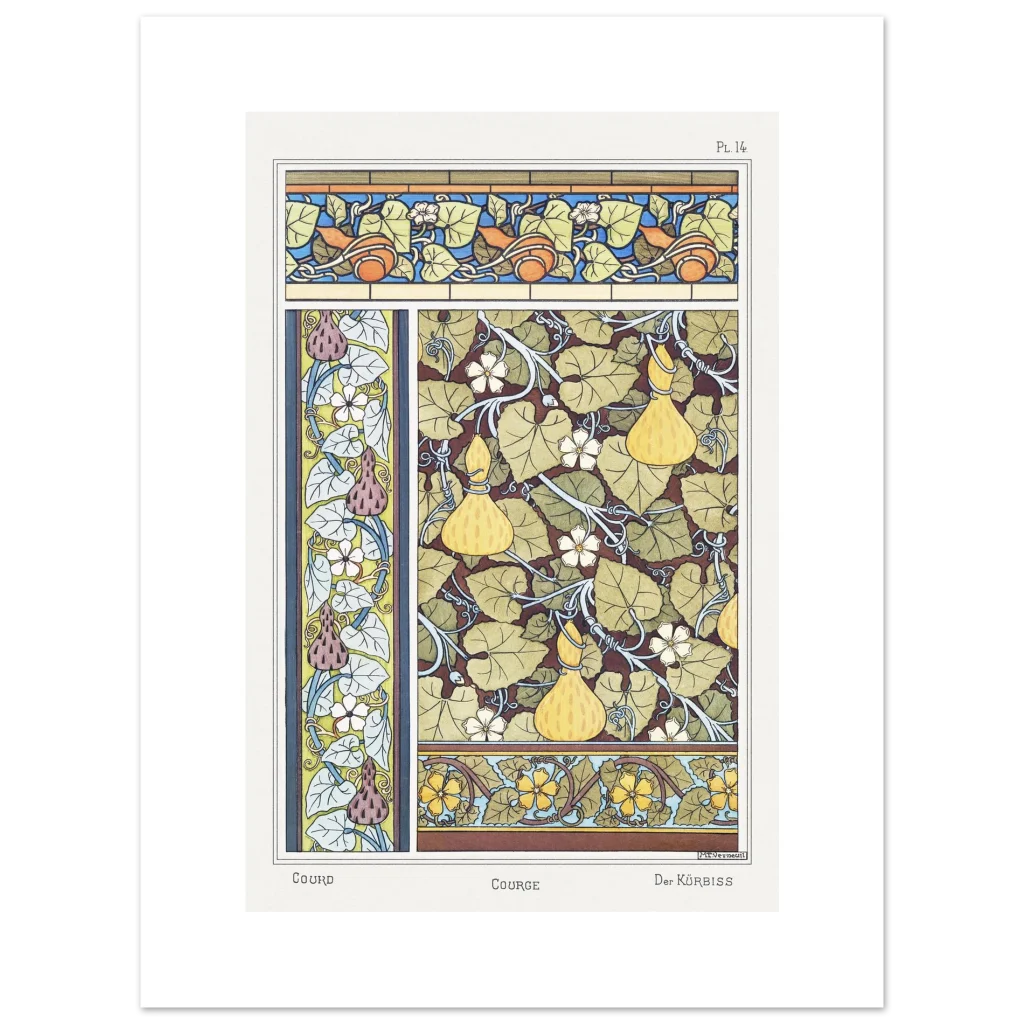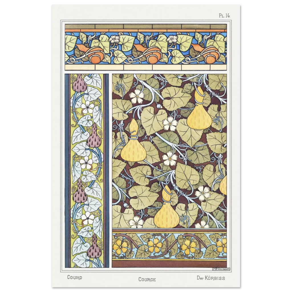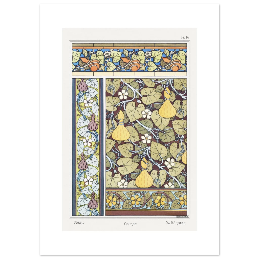 Immerse your space in the serene beauty of nature with our exquisite Art Nouveau Gourd & Floral Poster. Inspired by classic botanical illustrations, this piece captures the intricate dance of gourds, delicate blossoms, and verdant leaves in a harmonious color palette, bringing a touch of vintage elegance and organic charm to any room. It’s more than a poster; it’s a window to a bygone era of art and natural wonder.