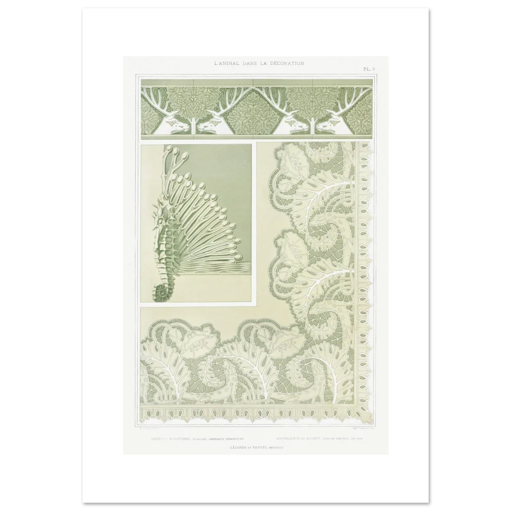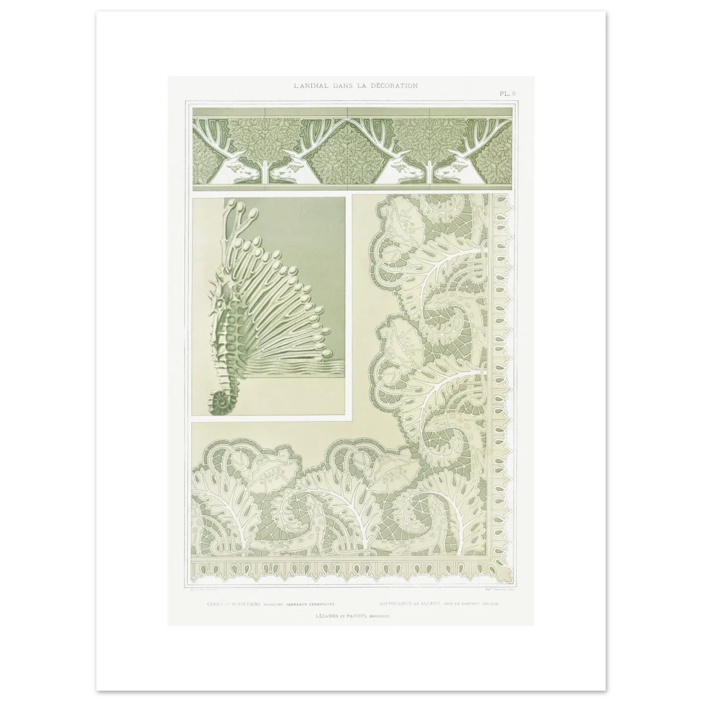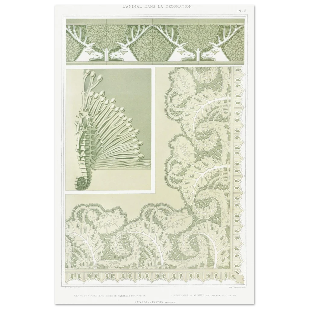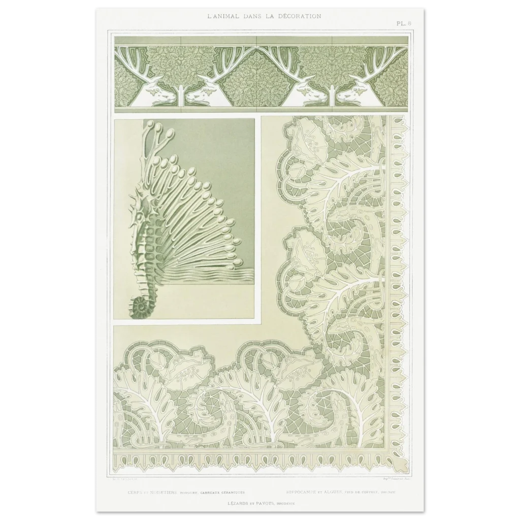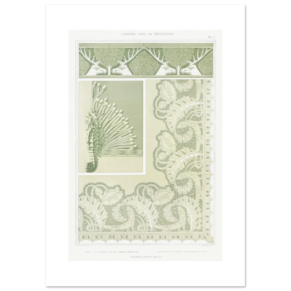 Art Nouveau Nature Premium Matte Poster – Elegant Deer, Seahorse & Lizard Prints for Your Sanctuary