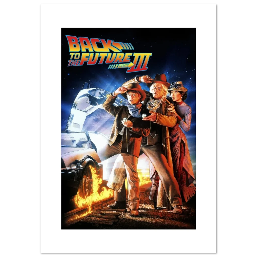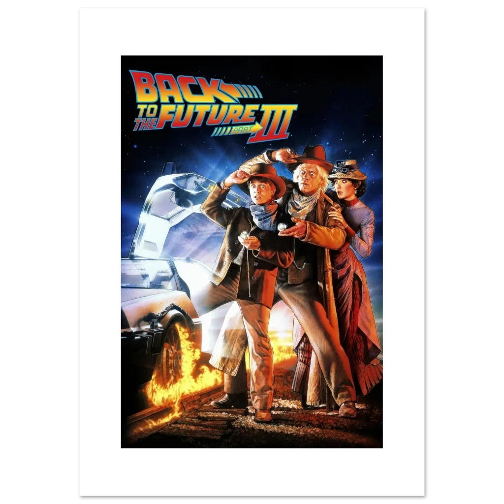 Travel through time with this iconic Back to the Future Part III movie poster, capturing the thrilling Western adventure of Doc and Marty. This vibrant semi-glossy print brings the film’s classic charm and electrifying energy right into your space, making it a perfect piece for any fan of the legendary trilogy. Relive the excitement with artwork that feels as silky to the touch as the original movie magic.