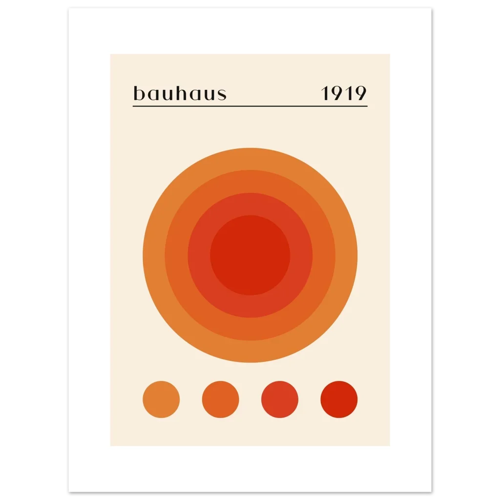 Bauhaus 1919 Sunburst Art Print – Premium Matte Paper Poster with Warm Orange & Red Tones