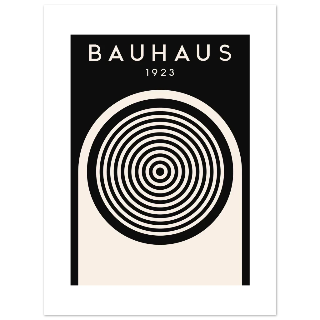 Immerse yourself in the timeless elegance of the Bauhaus movement with this striking black and cream poster. Featuring the iconic ‘Bauhaus 1923’ inscription above a captivating geometric arch and a concentric circle design, this piece brings a touch of minimalist sophistication and historical artistry to any space. Its bold contrast and clean lines embody the foundational principles of modern design, making it a perfect statement for art enthusiasts and contemporary decorators alike.