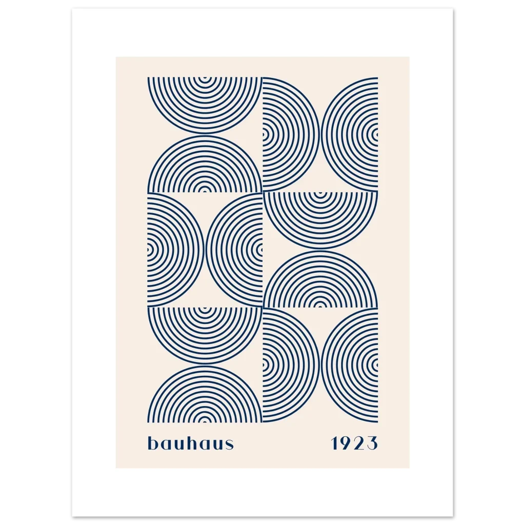 Immerse your space in the timeless elegance of the Bauhaus movement with this captivating geometric poster. Featuring a sophisticated arrangement of concentric circles in a rich navy blue against a soft, creamy background, this piece embodies minimalist modernism. Perfect for adding a touch of intellectual artistry and serene balance to any room, it’s a tribute to the iconic aesthetic of 1923.