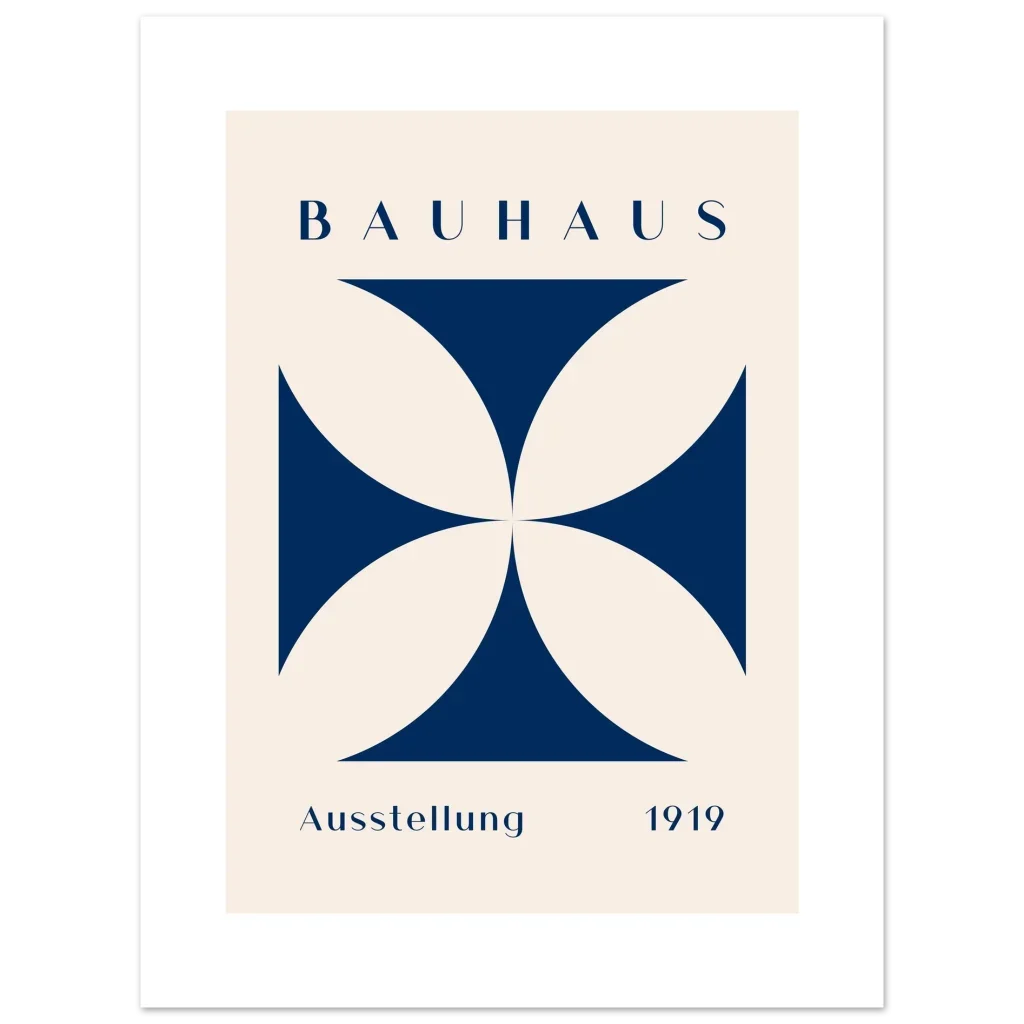 Step into the iconic world of Bauhaus with this striking geometric art print, celebrating the revolutionary 1919 exhibition. Its bold navy cross against a soft, creamy background captures the minimalist elegance and pioneering spirit of the era, perfect for adding a touch of sophisticated historical modernism to any space.