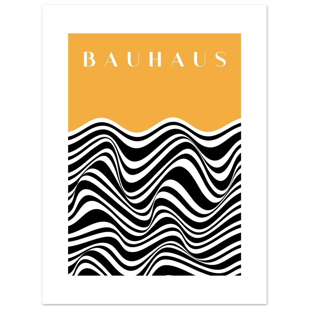 Bauhaus Op Art Poster – Dynamic Black & White Waves with Marigold Accent