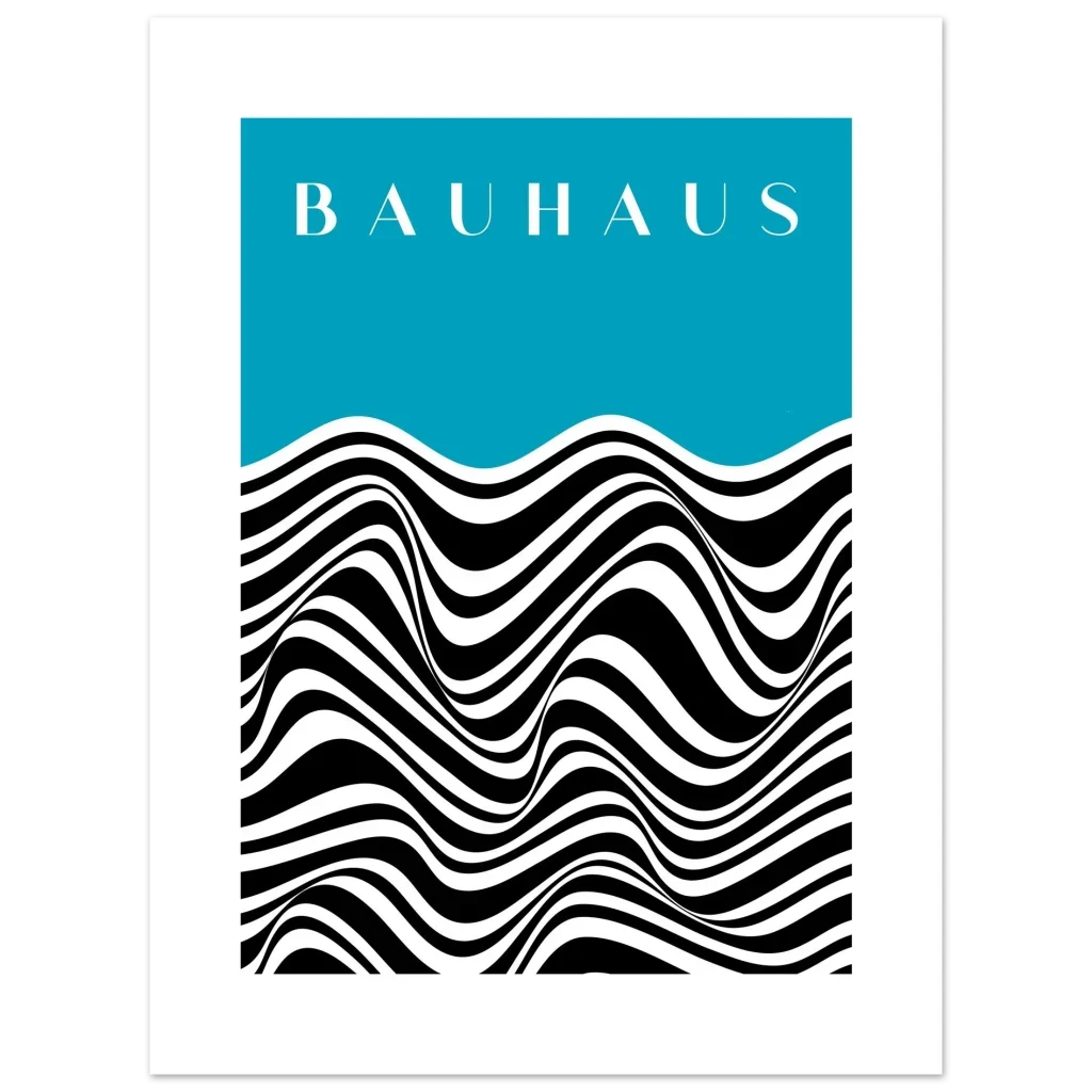 Bring dynamic movement and iconic Bauhaus flair into your space with this stunning op-art poster. Featuring mesmerizing black and white waves set against a vibrant turquoise sky, this piece offers a sophisticated blend of retro and modern aesthetics. It’s an instant conversation starter, perfect for adding an artistic touch to your living room, office, or creative studio.