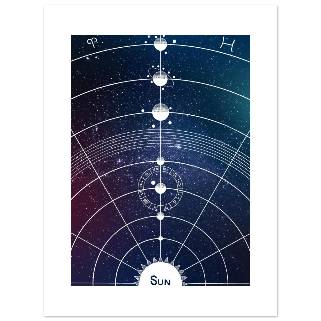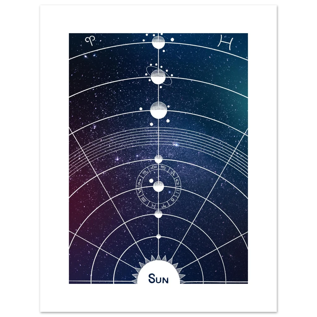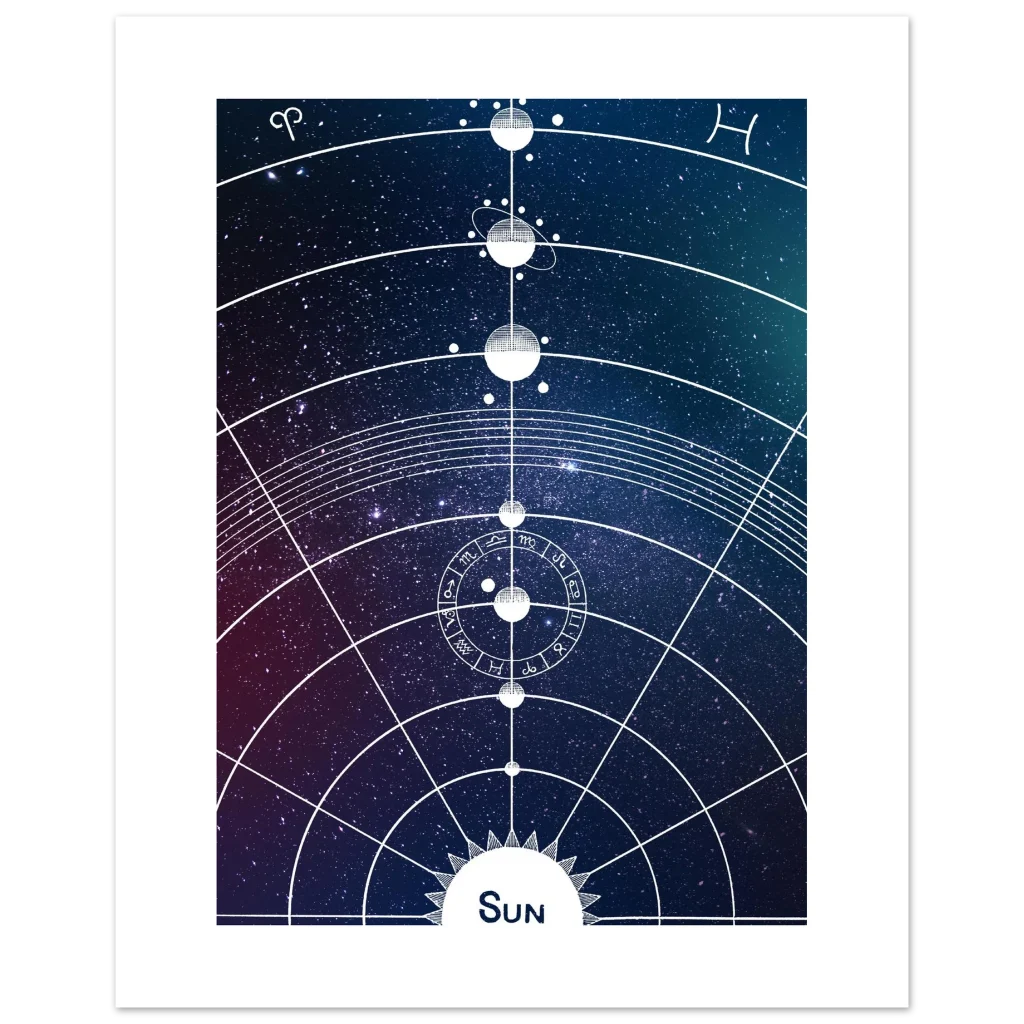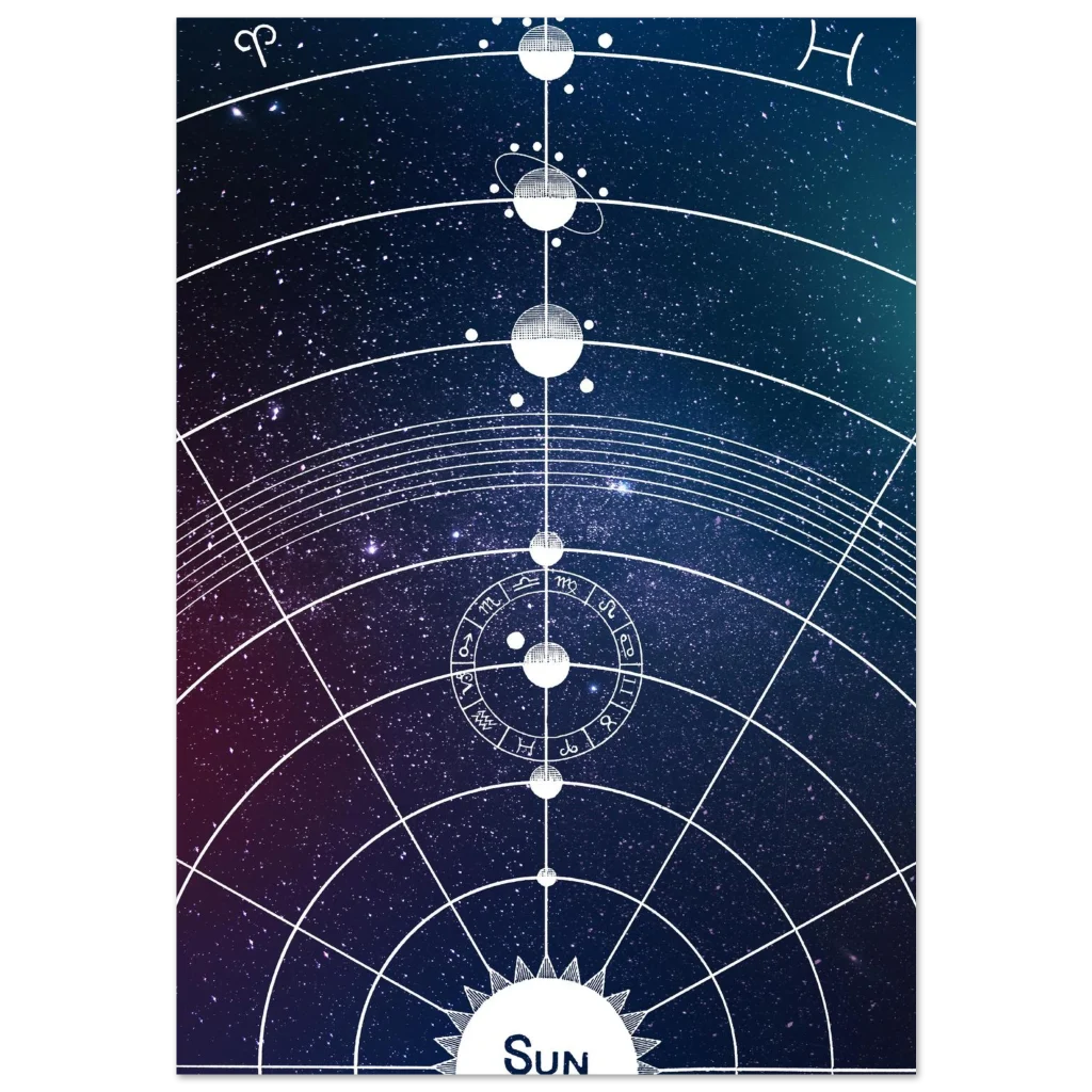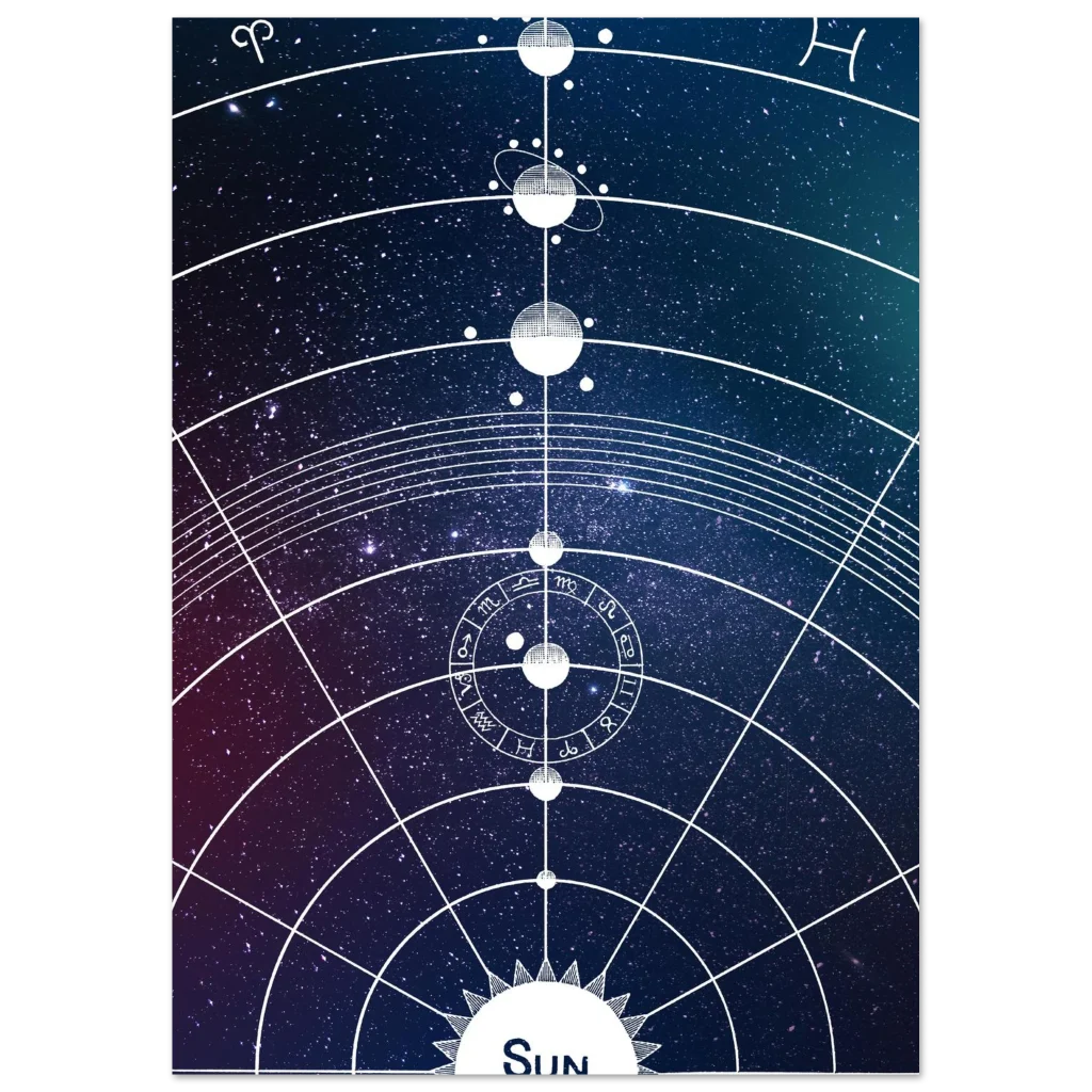 Celestial Cosmos & Zodiac Blueprint Poster – Premium Matte Paper Print for Astrology & Space Art Lovers