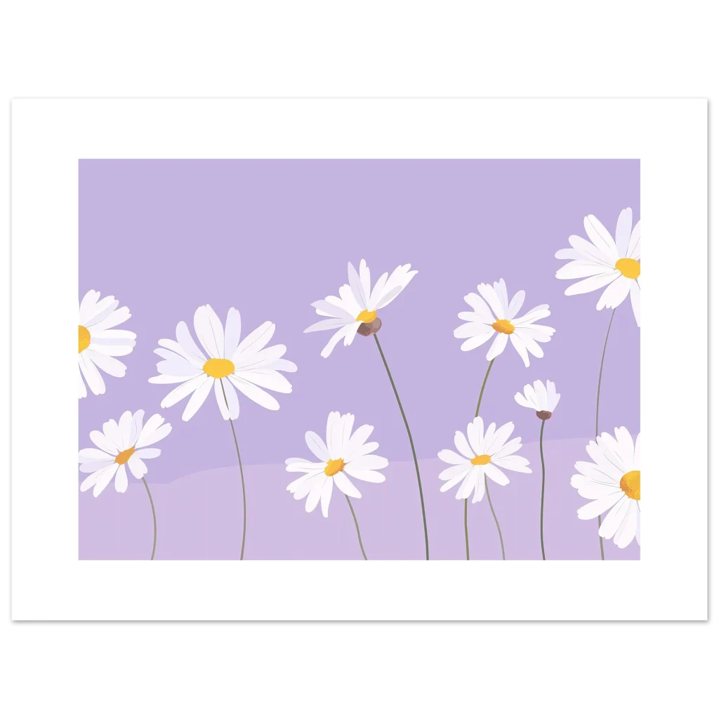 Experience art that feels silky to the touch with our high-quality, lighter-weight, classic semi-glossy paper, designed to make every detail of this enchanting daisy scene shine. Select the ideal dimensions from our wide array of sizes to perfectly complement your space and personal style.