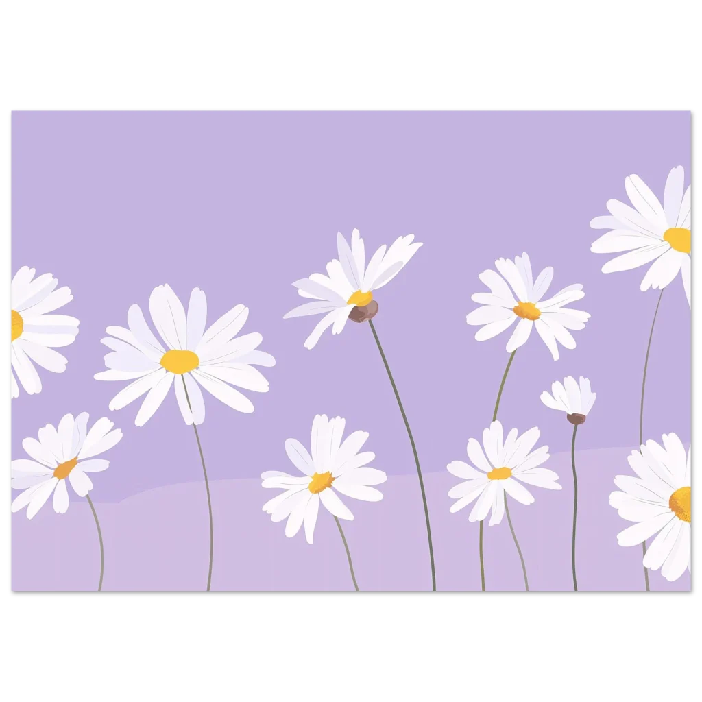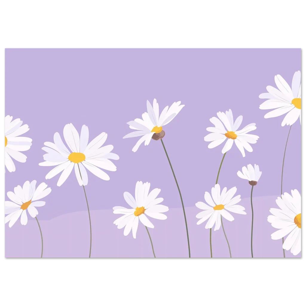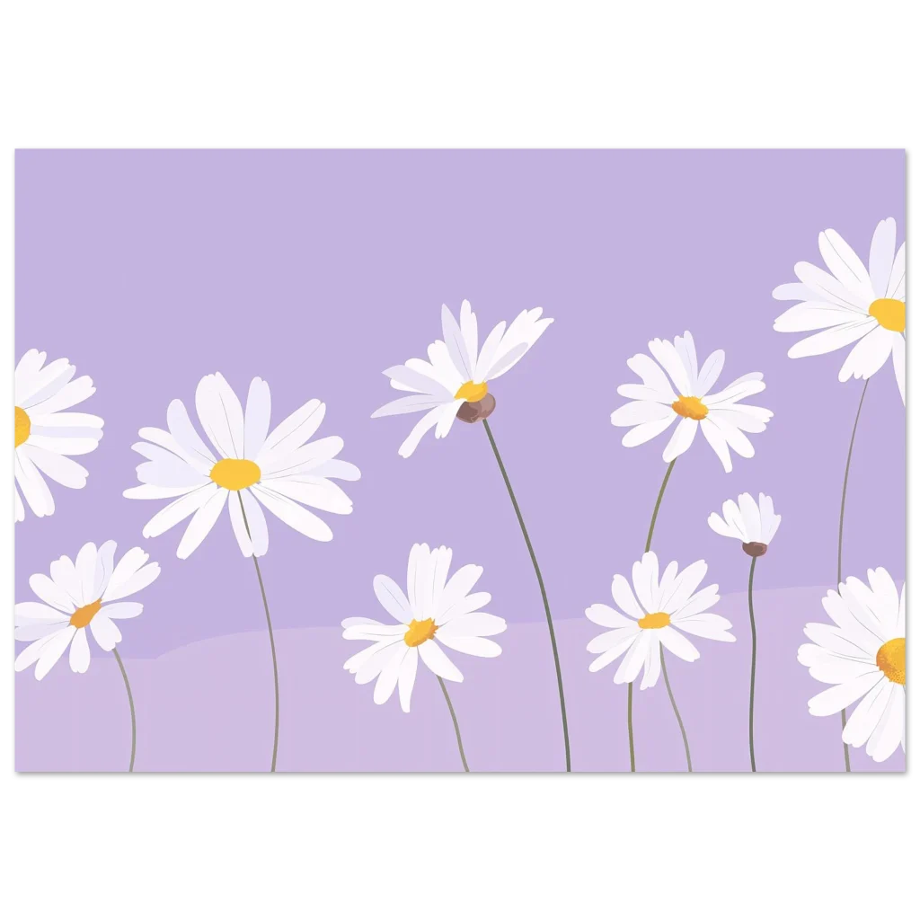 Bring the gentle beauty of a serene lavender field dotted with cheerful daisies into your home. This charming floral art print captures a tranquil moment, perfect for adding a touch of peaceful elegance and a pop of soft color to any room. Its dreamy aesthetic and delicate design evoke a sense of calm and natural wonder.
