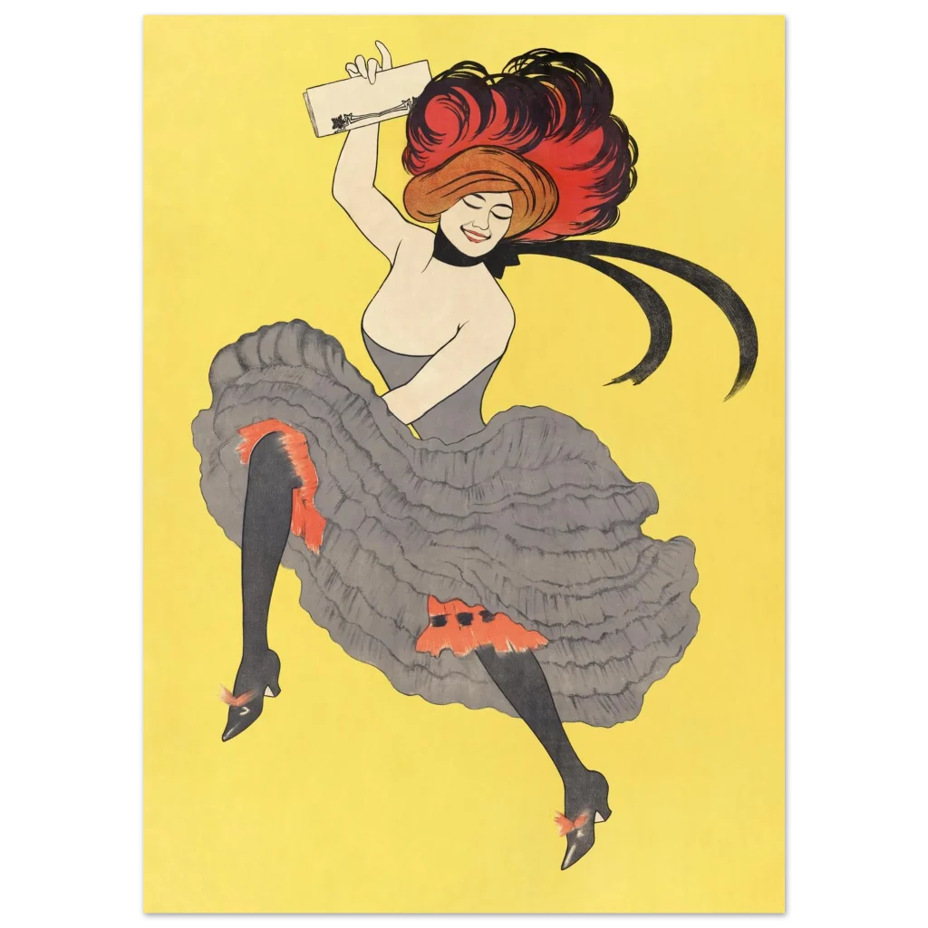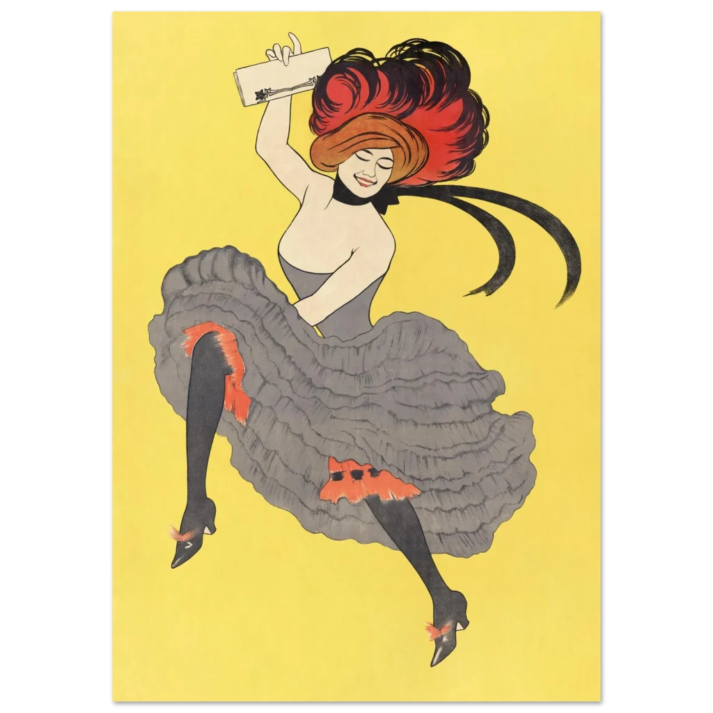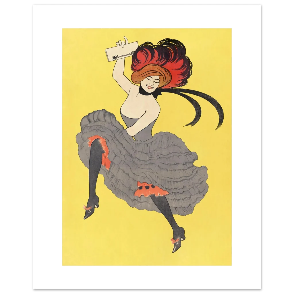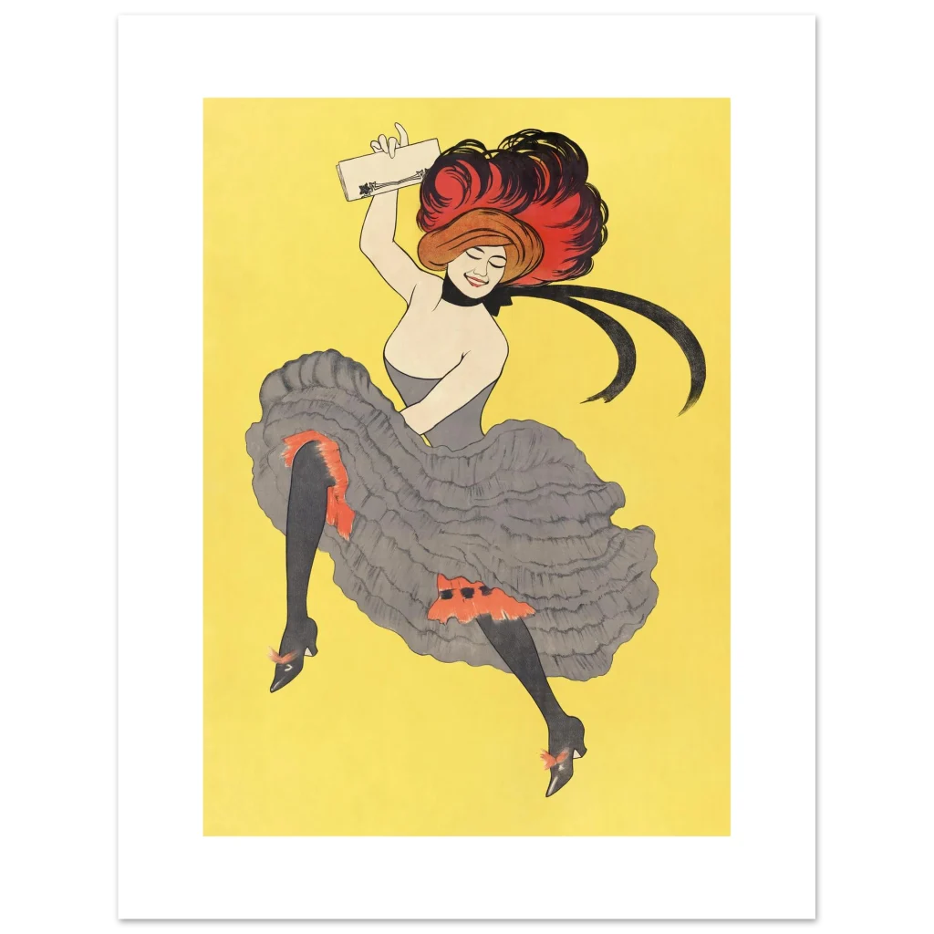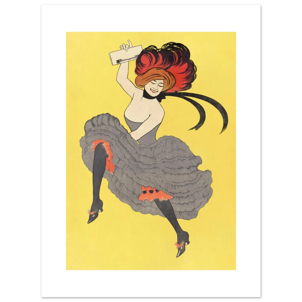 Bring the vibrant energy and timeless elegance of Belle Époque Paris into your home with this stunning poster. Capturing the joyful spirit of a cabaret dancer in full swing, this piece features bold red and classic black accents against a radiant yellow background, reminiscent of classic French artistry. It’s perfect for adding a touch of vintage flair and playful sophistication to any room.