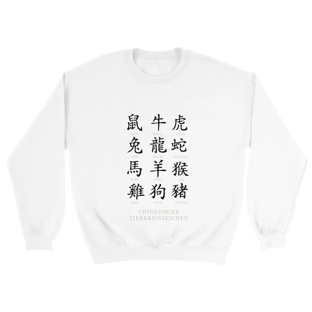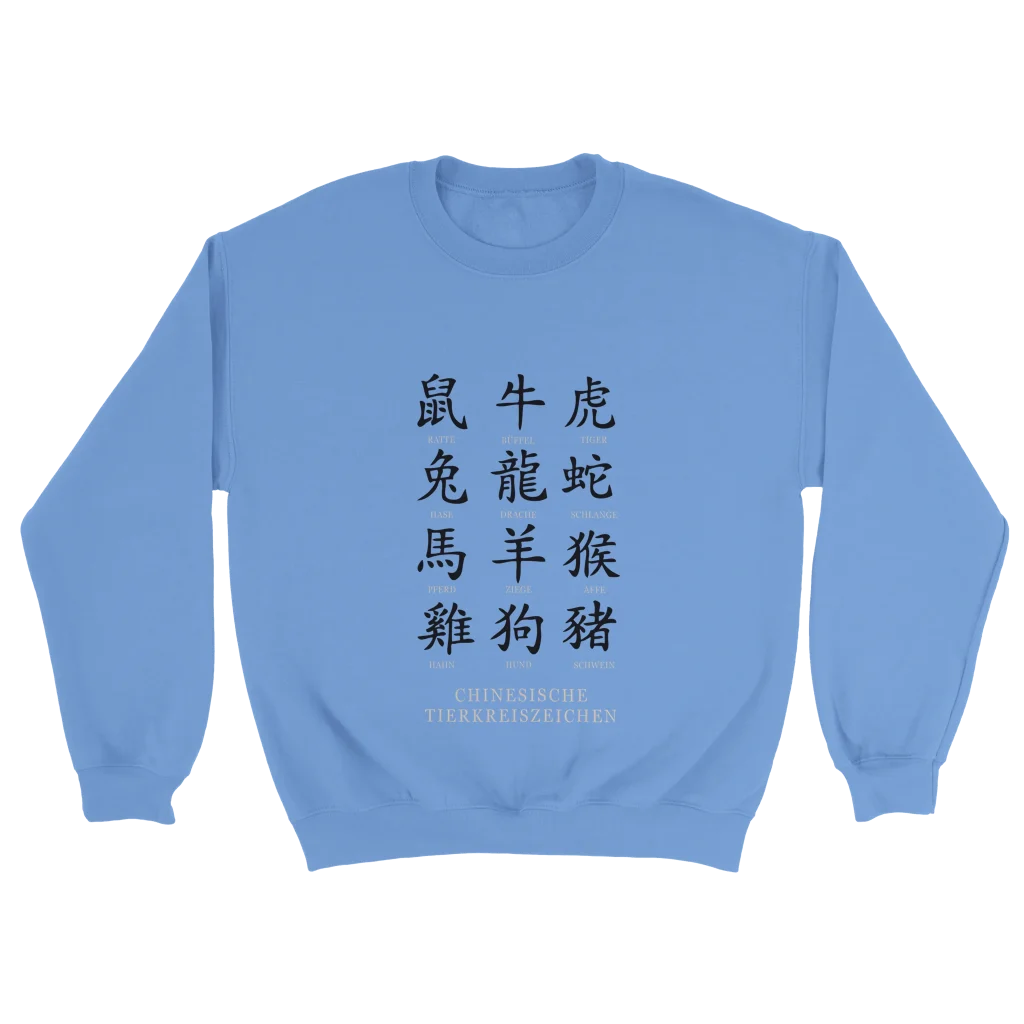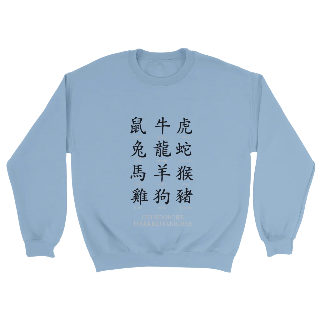Chinese Zodiac Animals Poster with Calligraphy – Chinese Tierkreiszeichen Chart (German Labels) Classic Unisex Crewneck Sweatshirt