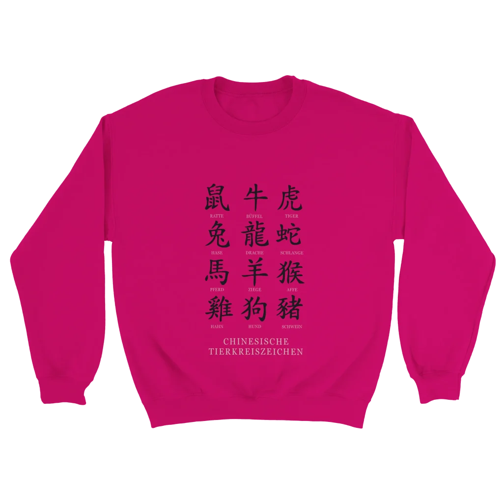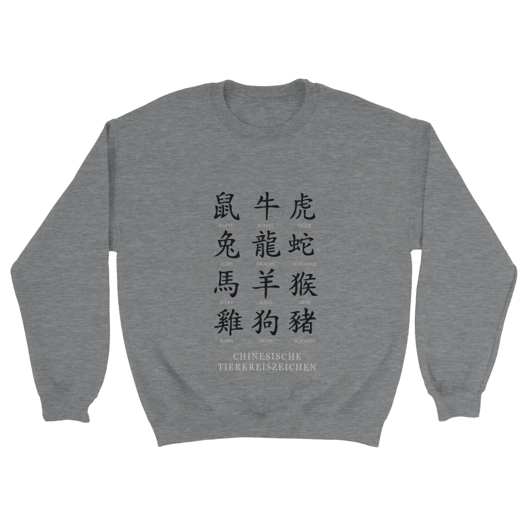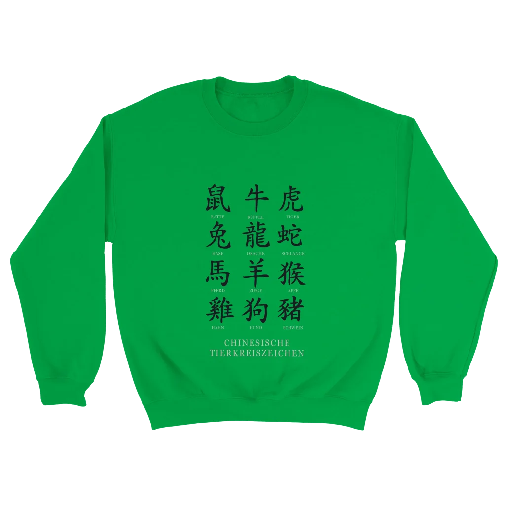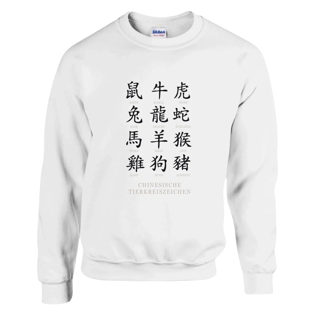 Chinese Zodiac Animals Poster with Calligraphy – Chinese Tierkreiszeichen Chart (German Labels) Classic Unisex Crewneck Sweatshirt