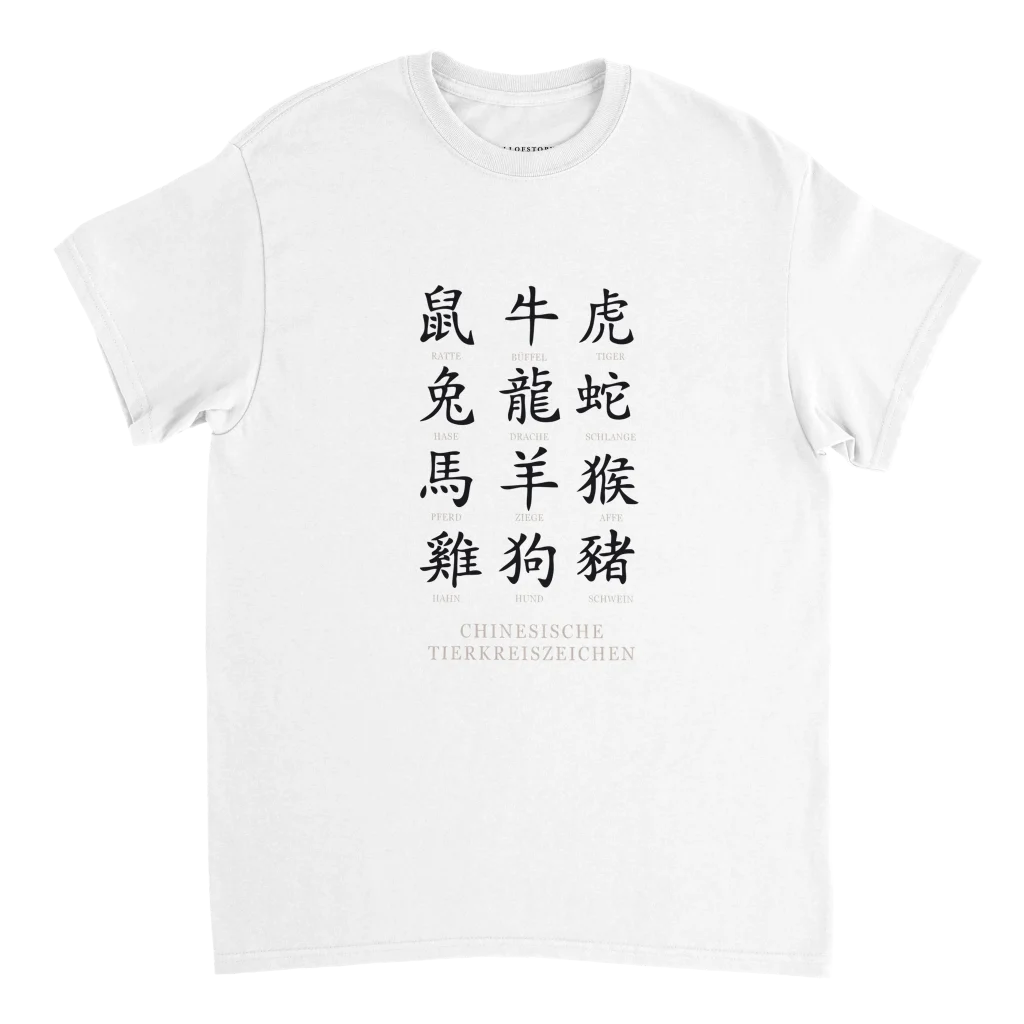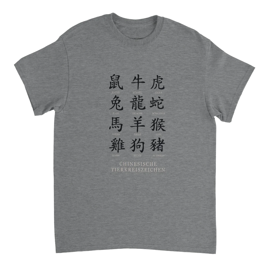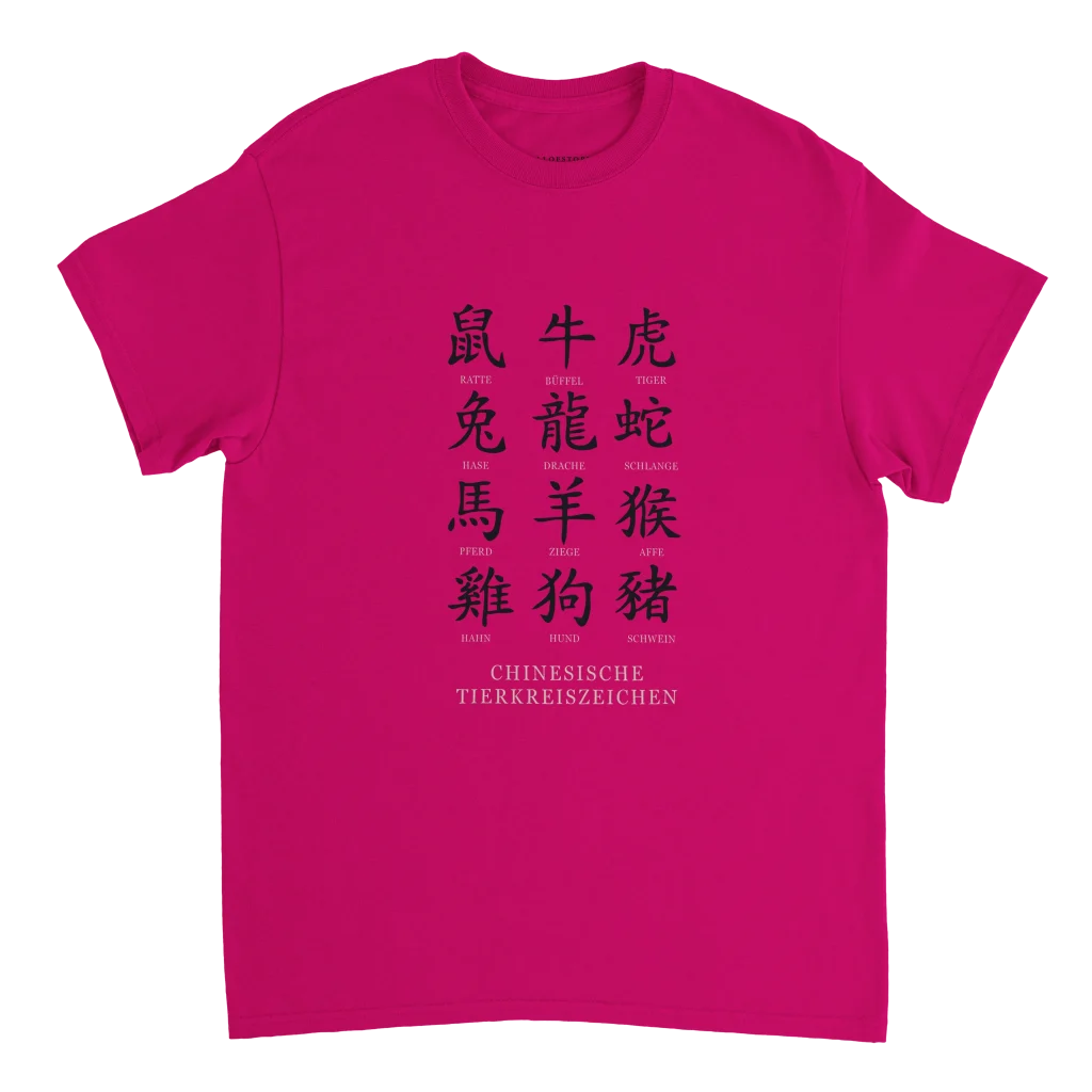 Chinese Zodiac Animals Poster with Calligraphy – Chinese Tierkreiszeichen Chart (German Labels) Heavyweight Unisex Crewneck T-shirt