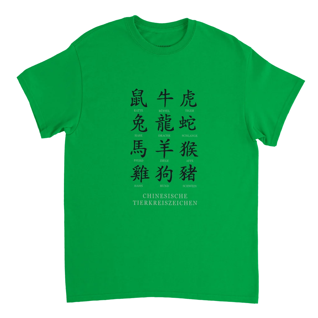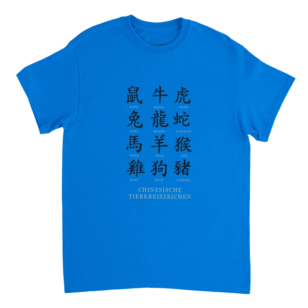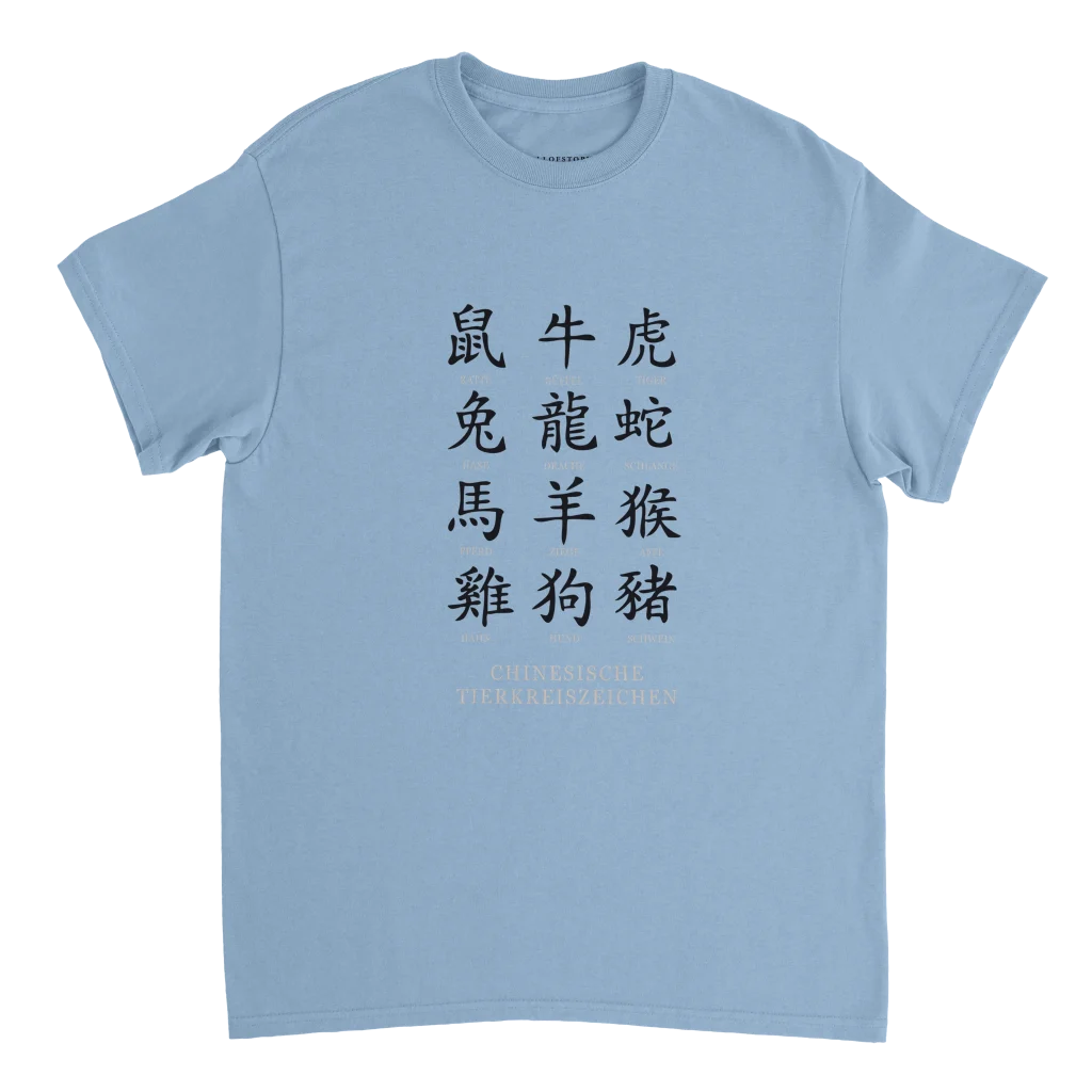 Chinese Zodiac Animals Poster with Calligraphy – Chinese Tierkreiszeichen Chart (German Labels) Heavyweight Unisex Crewneck T-shirt