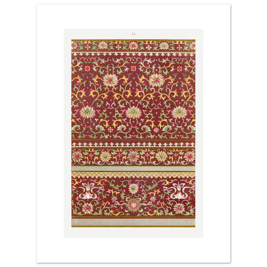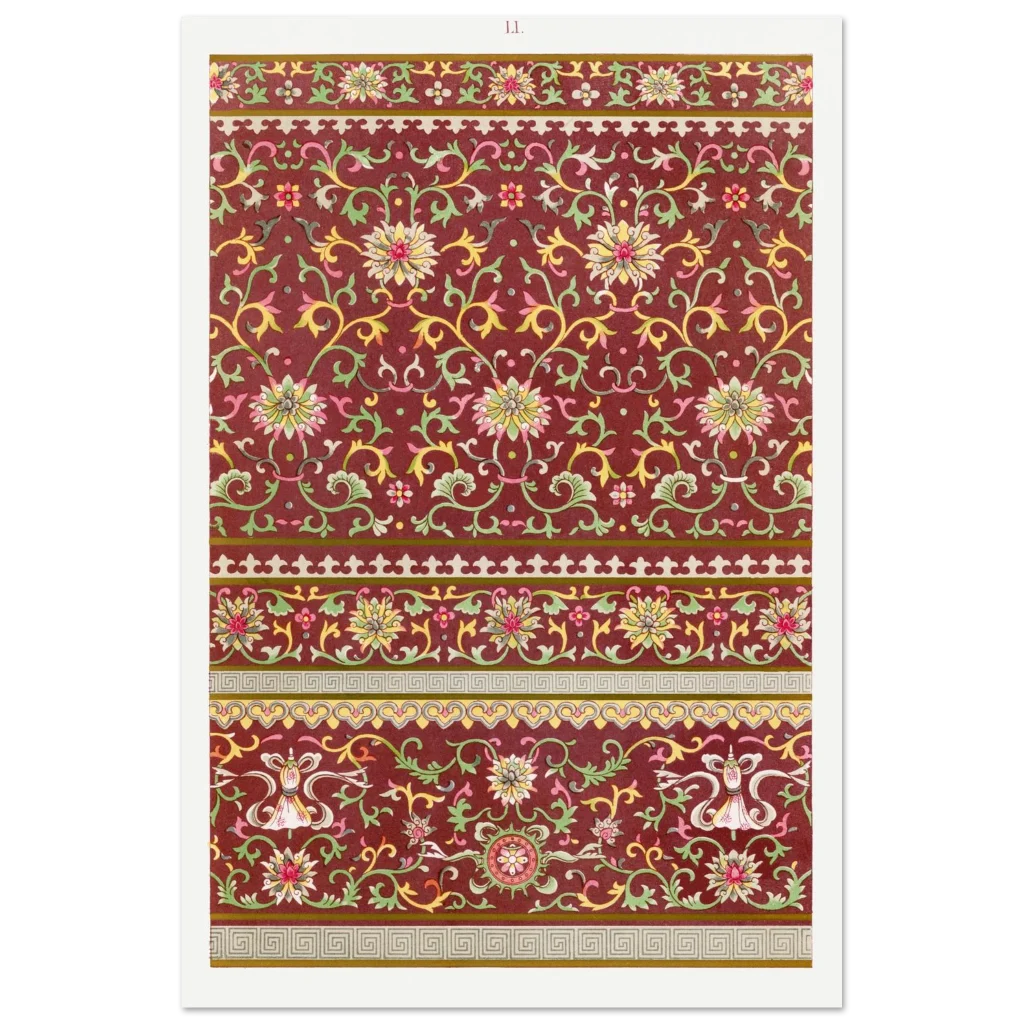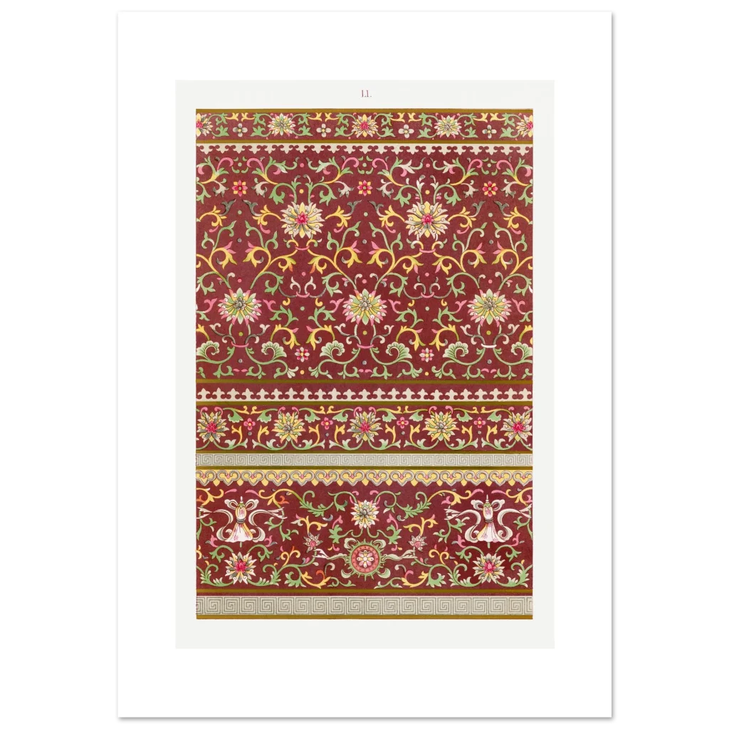Bring timeless elegance and a touch of exotic beauty to your space with our Chinoiserie Chic Floral Pattern Poster. Inspired by intricate vintage Asian artistry, this print features a rich, deep red background adorned with delicate gold, green, and pink floral motifs, creating a serene yet vibrant aesthetic that complements any room.