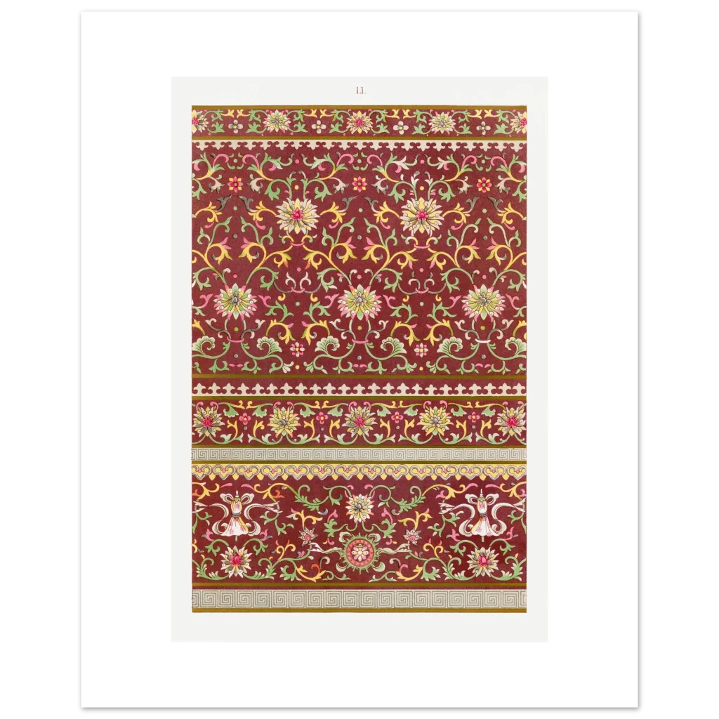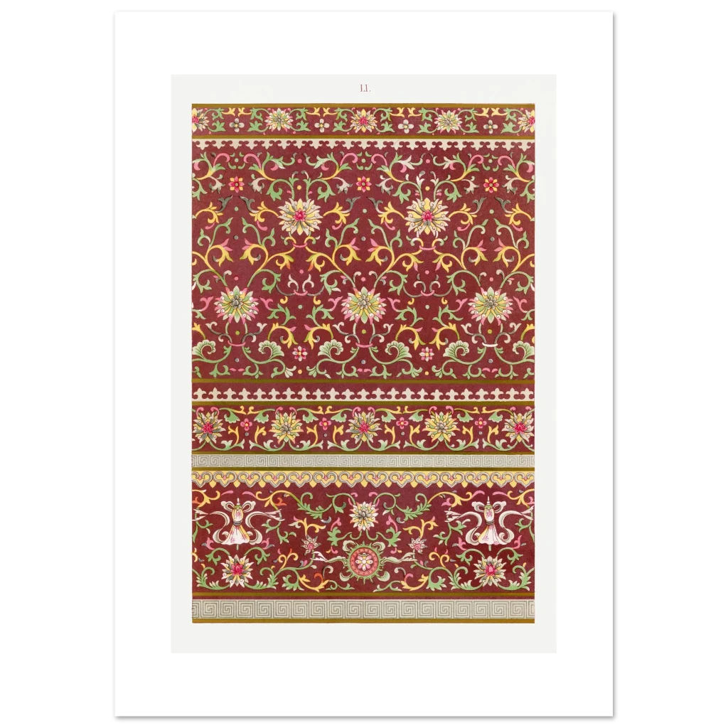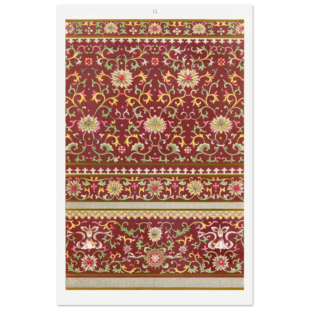 Bring timeless elegance and a touch of exotic beauty to your space with our Chinoiserie Chic Floral Pattern Poster. Inspired by intricate vintage Asian artistry, this print features a rich, deep red background adorned with delicate gold, green, and pink floral motifs, creating a serene yet vibrant aesthetic that complements any room.