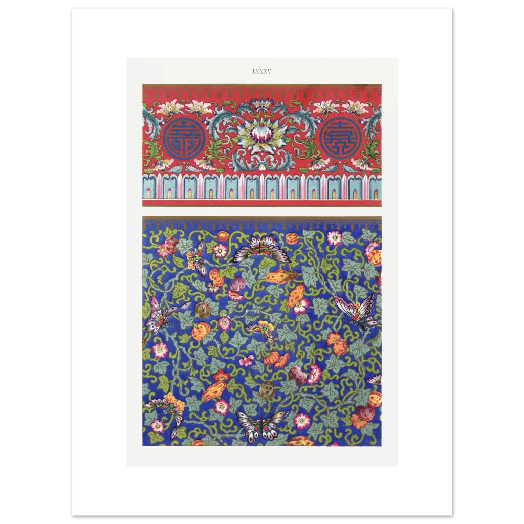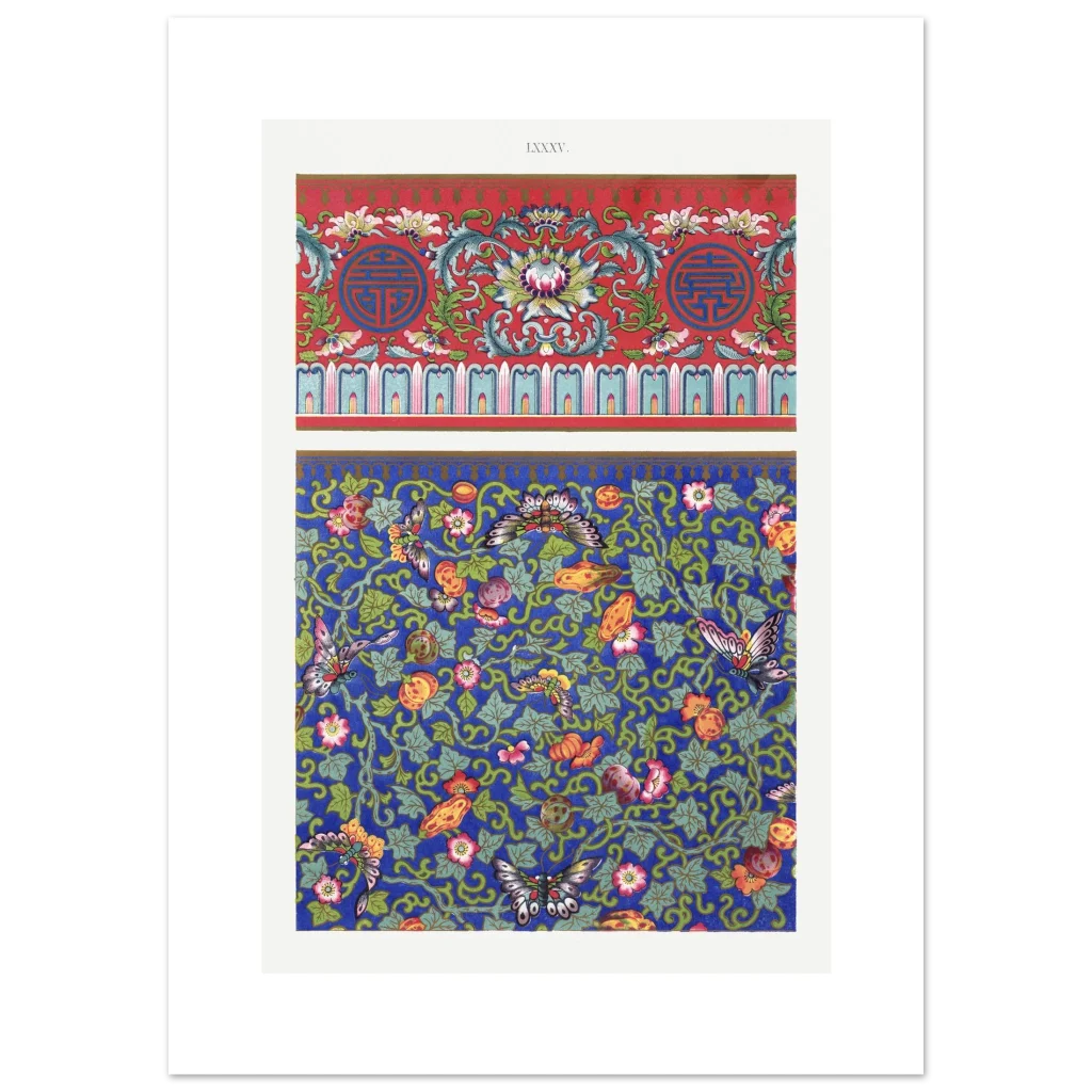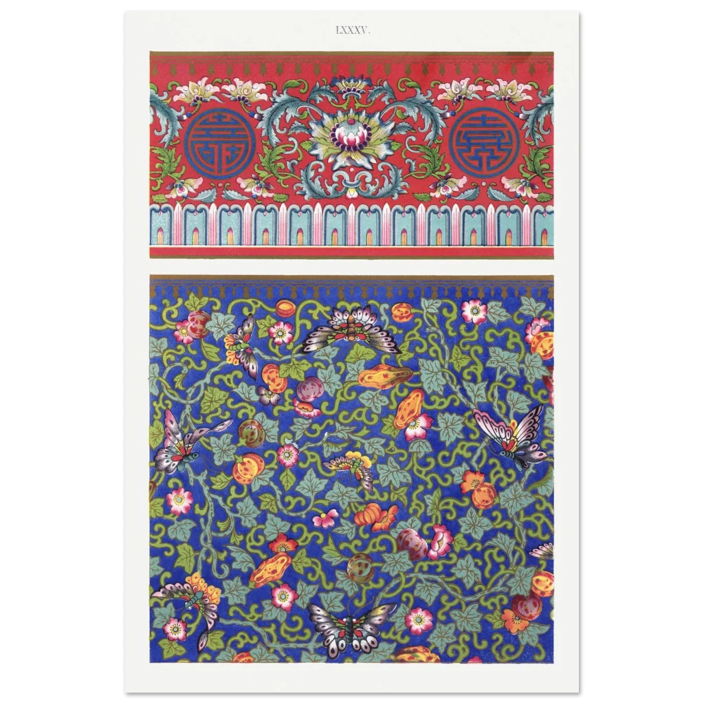 Chinoiserie Chic: Vintage Asian Floral & Butterfly Motif Premium Matte Paper Poster in various sizes