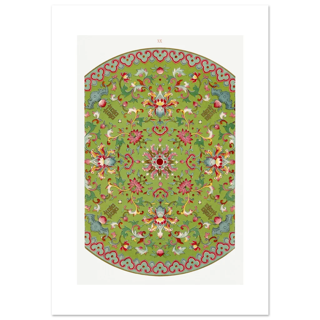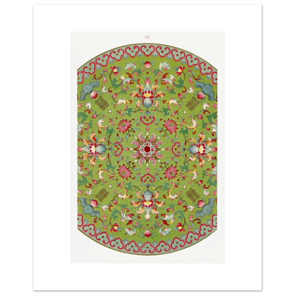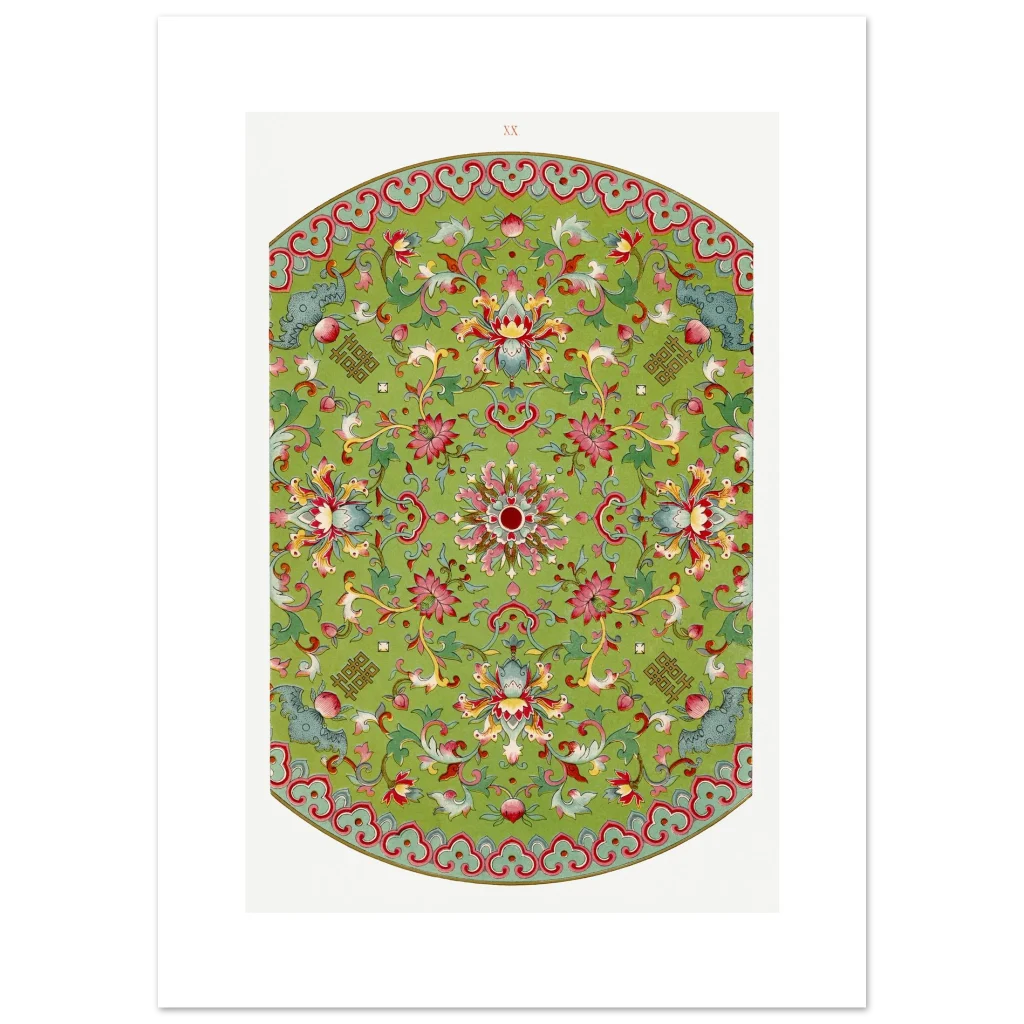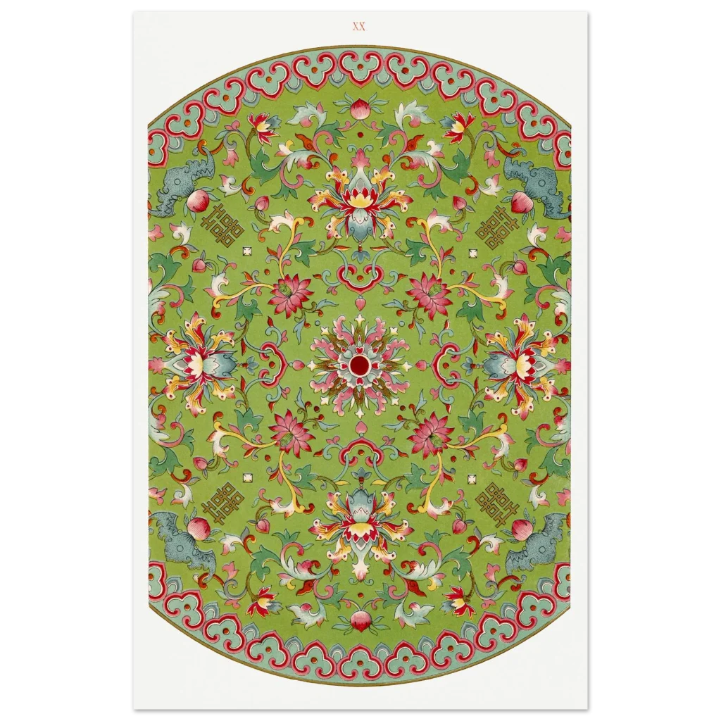 Chinoiserie Floral & Cloud Motif Premium Matte Paper Poster | Vintage Green Botanical Art Print for Elegant Decor