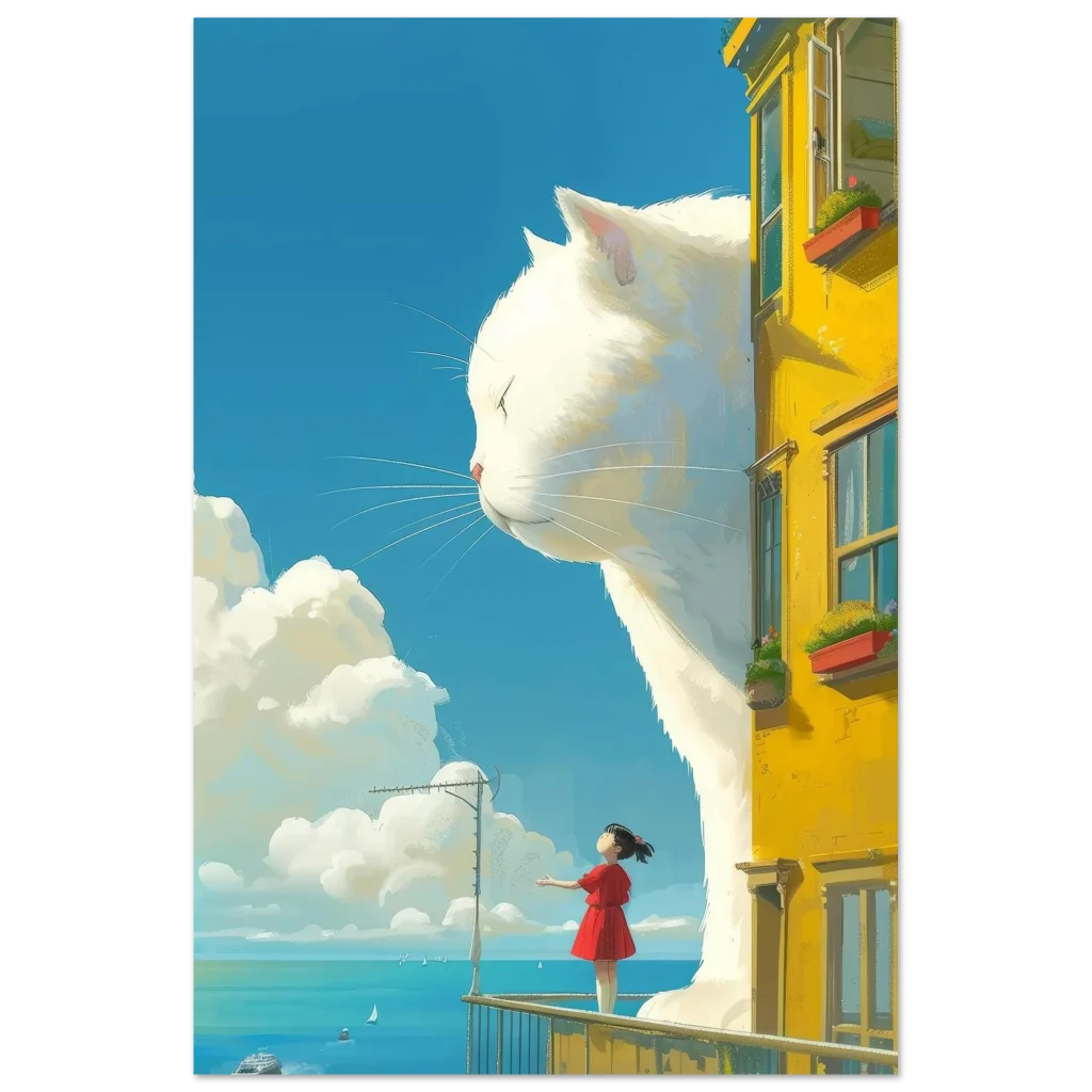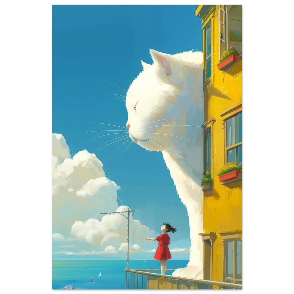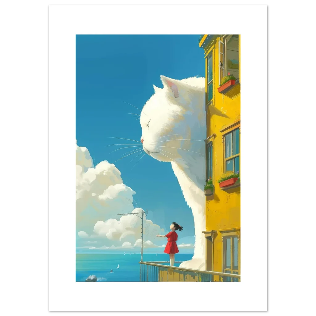 Dreamy Cat Companion Poster: Whimsical Art Print with a Giant Feline and Little Girl, Premium Matte Paper for Enchanting Decor