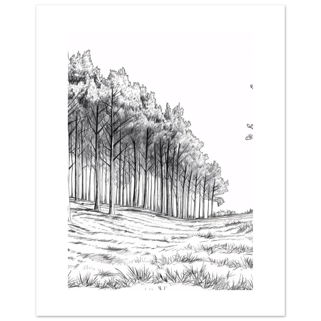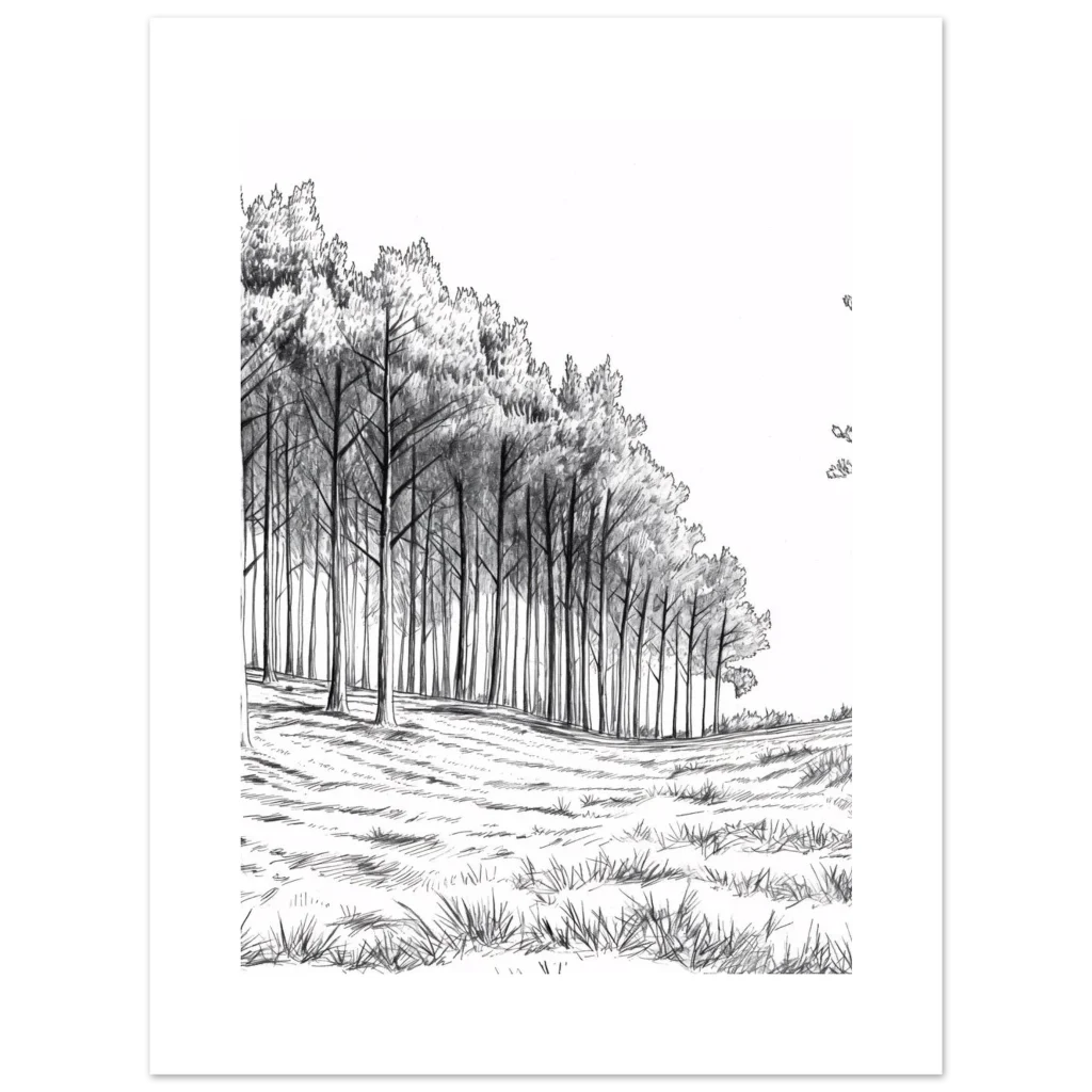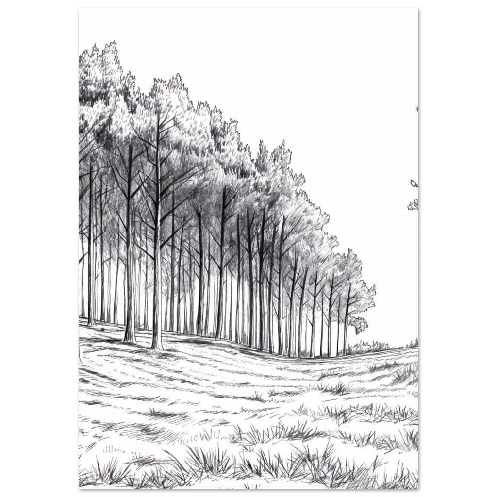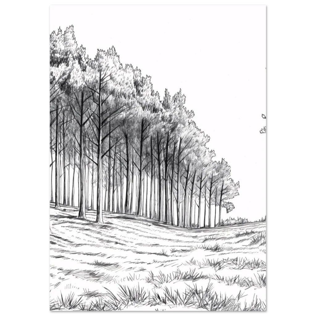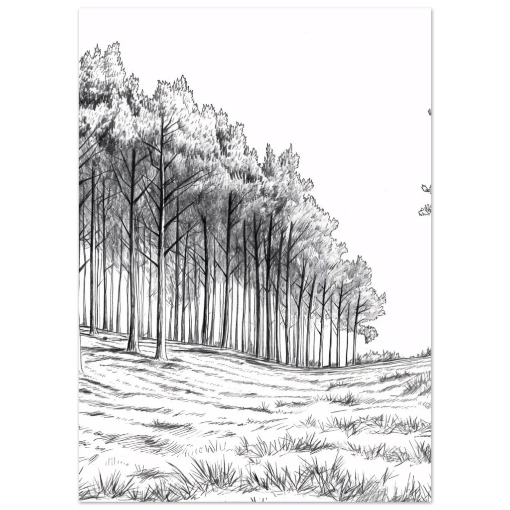 Enchanted Forest Charcoal Sketch Premium Matte Poster – Evoke Woodland Serenity in Any Size
