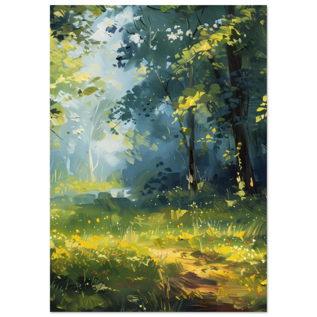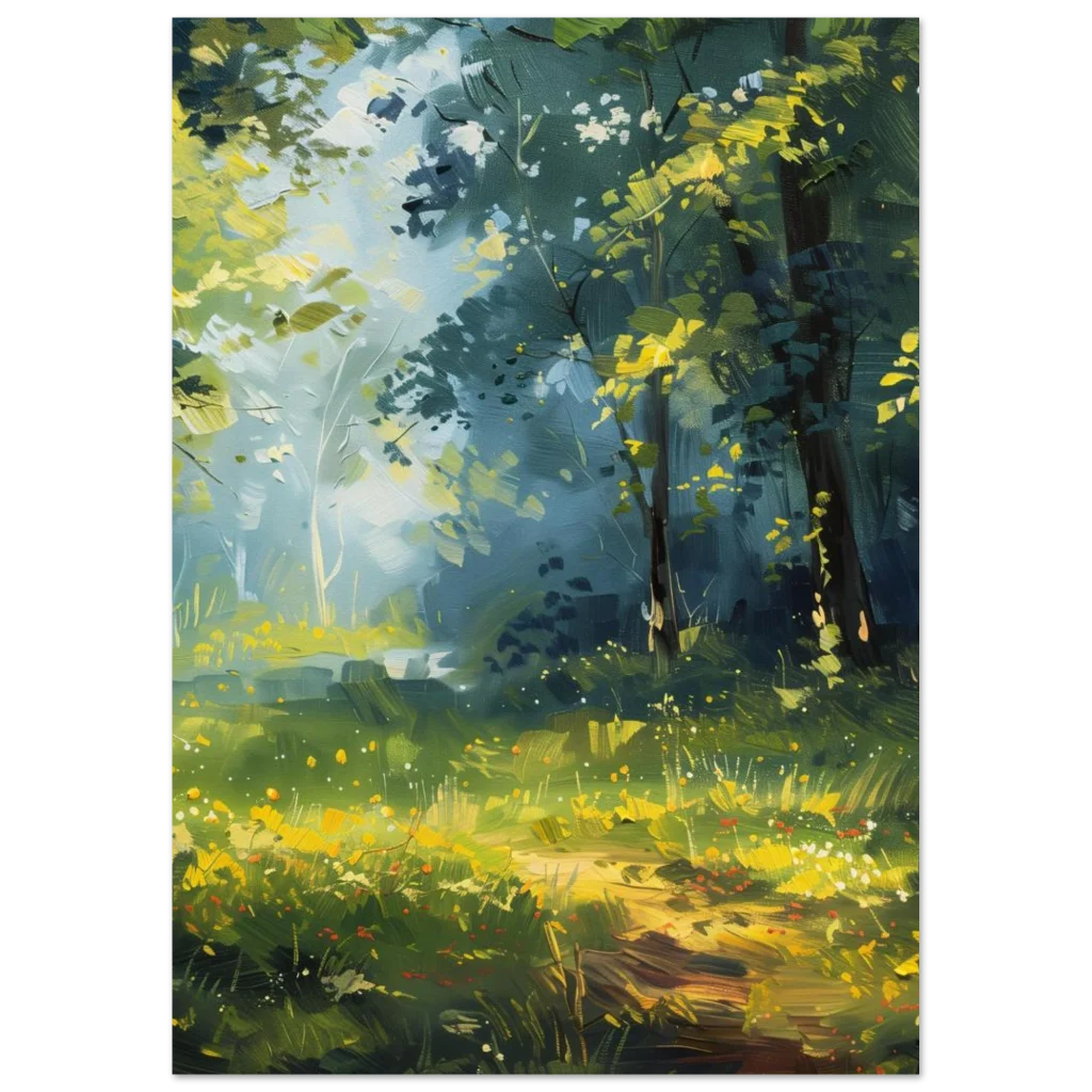 Enchanted Forest Path Matte Poster – Vibrant Impressionist Landscape Wall Art