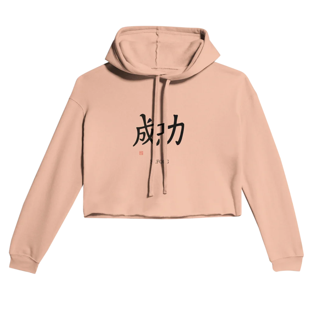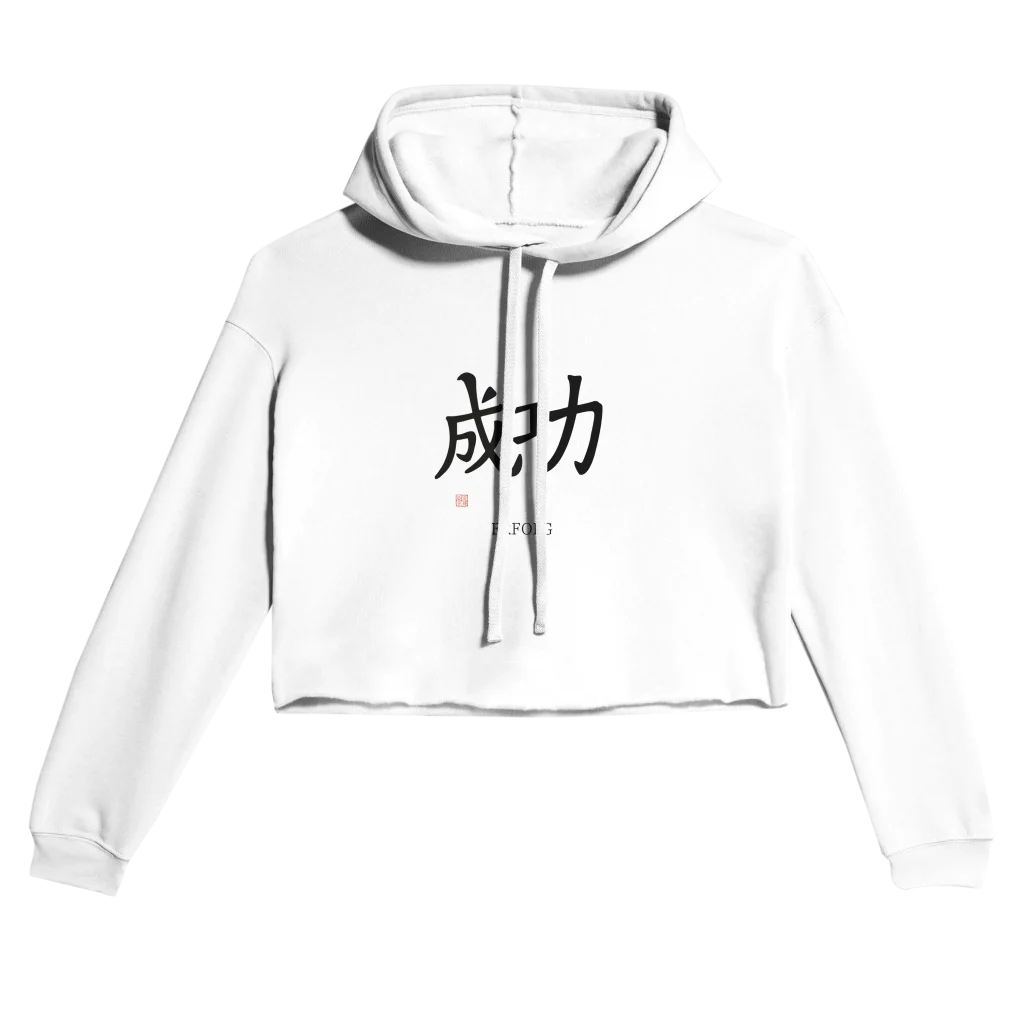 Erfolg Kanji Calligraphy Art | 成功 Character with Red Artist Seal Women’s Cropped Hoodie