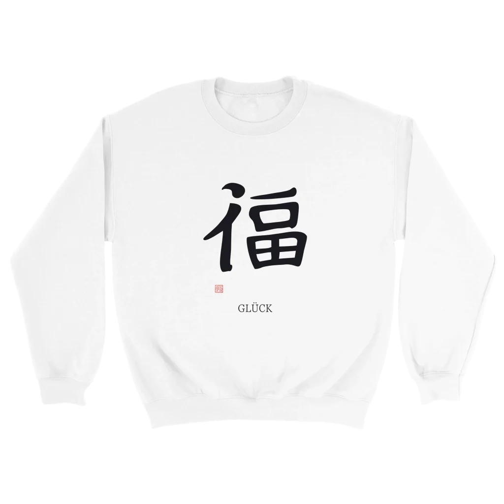 Glück Kanji Sweatshirt – Minimalist Japanese Symbol for Happiness Crewneck Classic Unisex Crewneck Sweatshirt