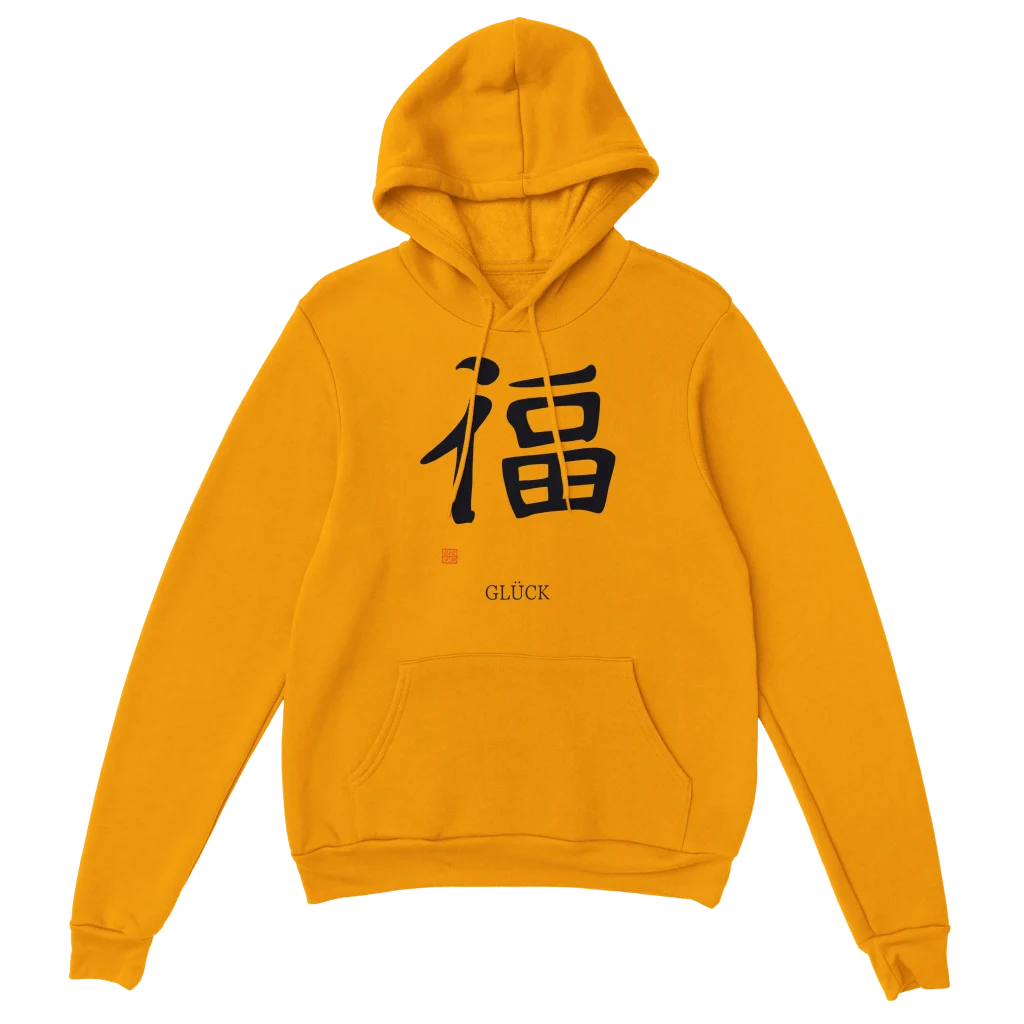 Embrace comfort and positive vibes with our Classic Unisex Pullover Hoodie, featuring the elegant Japanese Kanji for “Glück” (Luck/Happiness). This hoodie is more than just a piece of clothing; it’s a statement of serenity and good fortune, perfect for anyone who appreciates meaningful design and ultimate coziness. The minimalist yet powerful graphic adds a touch of sophistication to your everyday style, making it an ideal choice for relaxed days or thoughtful gifting.