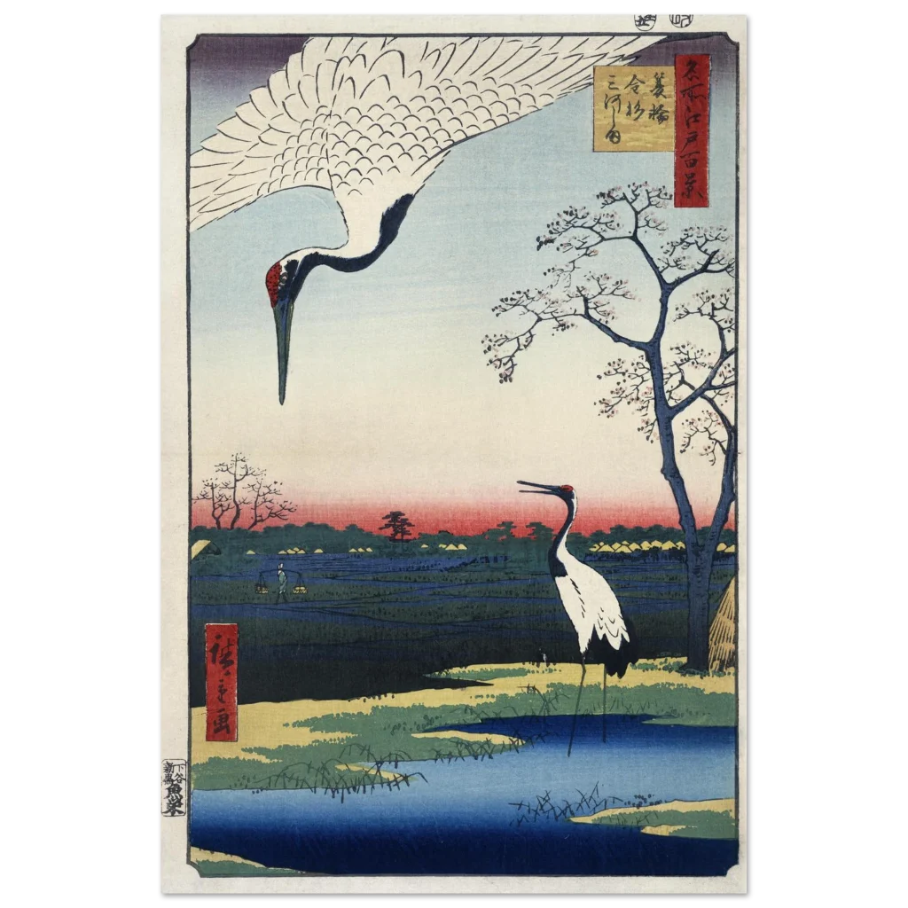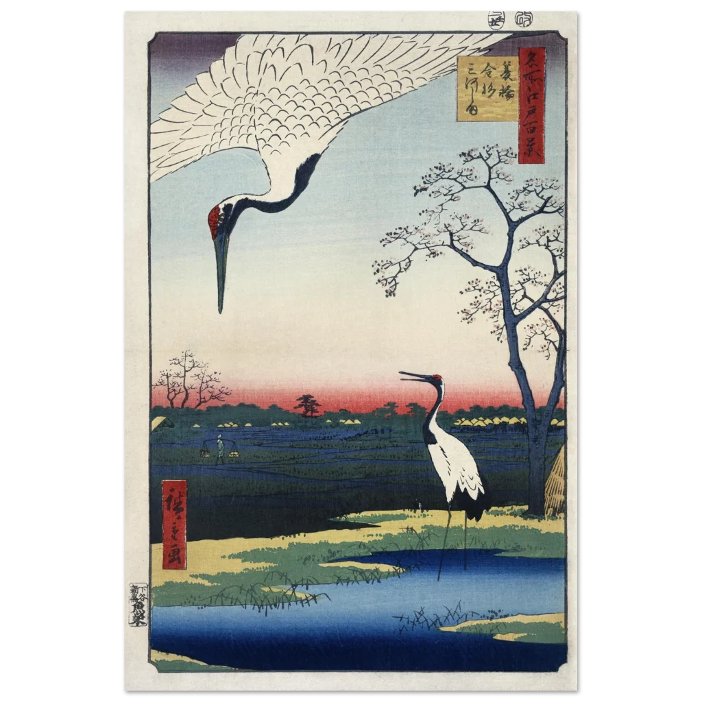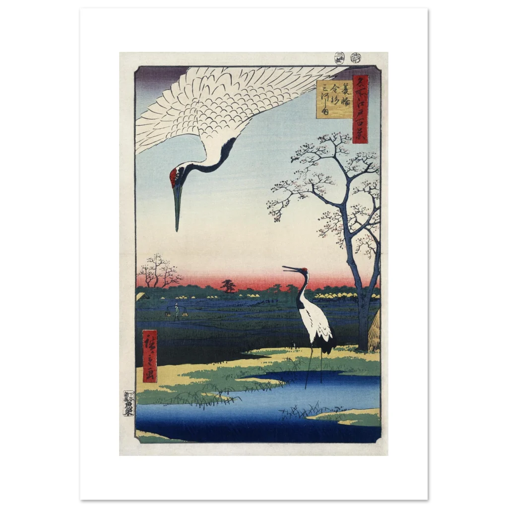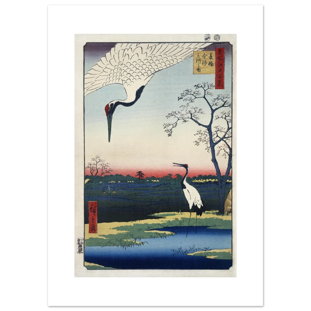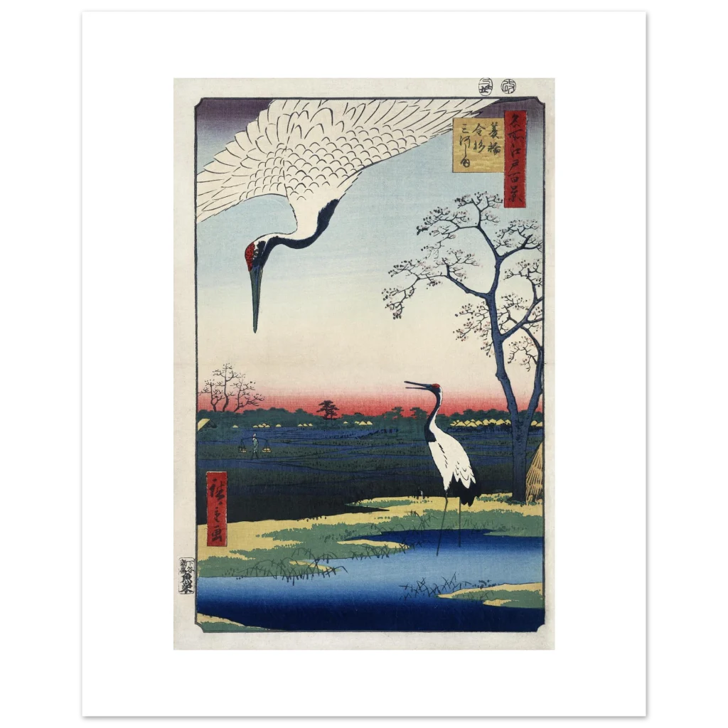Graceful Cranes in Sunset Japanese Ukiyo-e Art Print – Premium Matte Paper Poster in Multiple Sizes