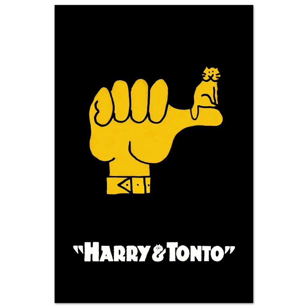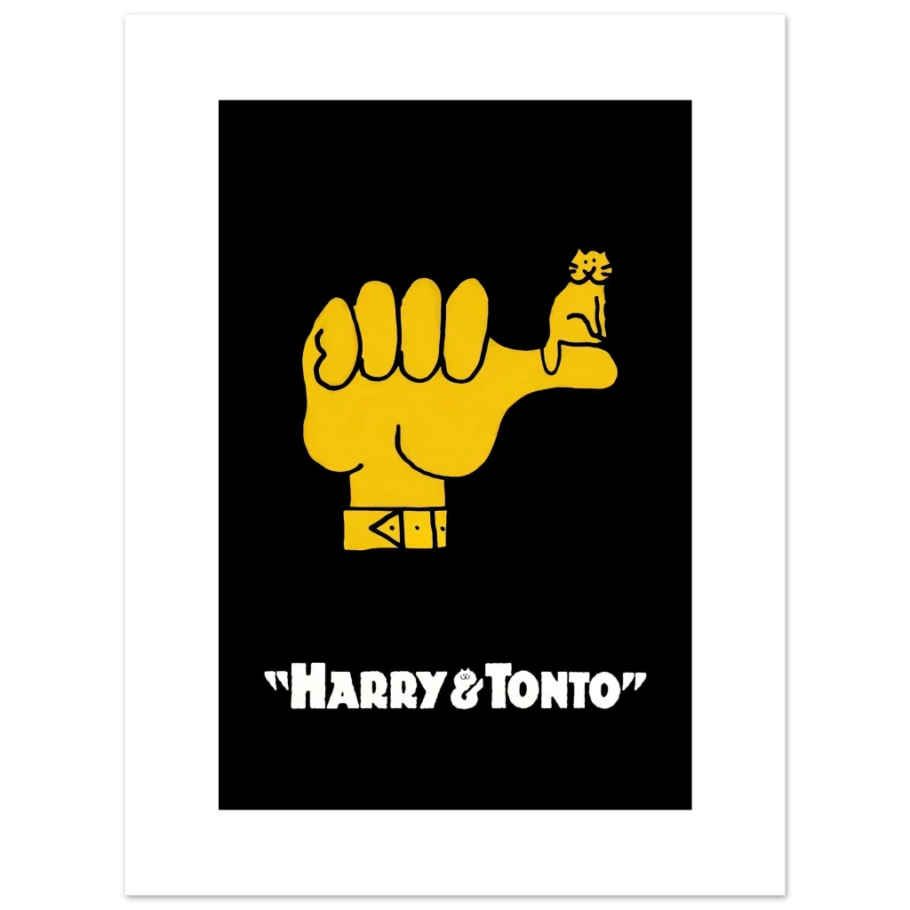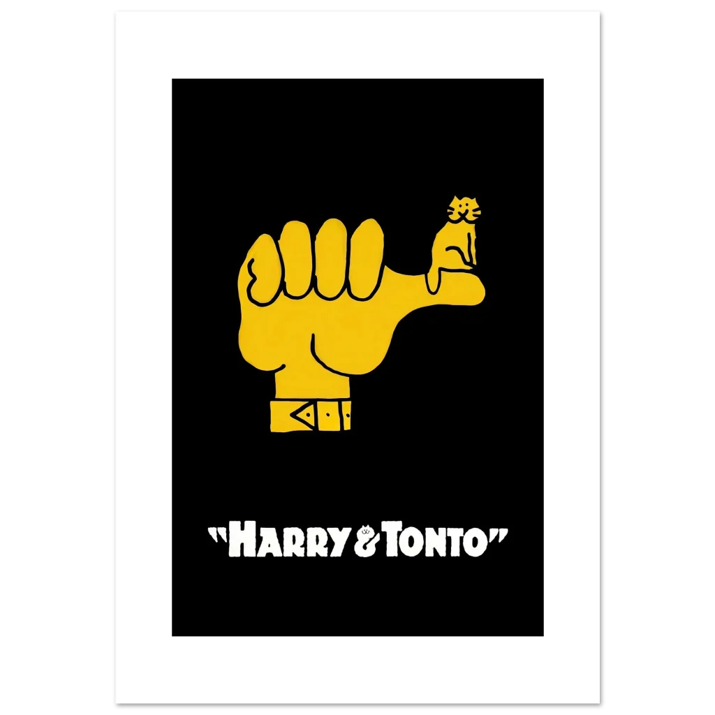 Celebrate the whimsical charm of ‘Harry & Tonto’ with this striking art print, featuring a bold yellow fist adorned with a tiny, adorable cat against a deep black background. This poster captures the essence of companionship and adventure, perfect for adding a touch of quirky warmth and classic film nostalgia to your space. Experience art that feels silky to the touch with our high-quality, lighter-weight, classic semi-glossy paper, designed to make the vibrant yellow pop with subtle brilliance.
