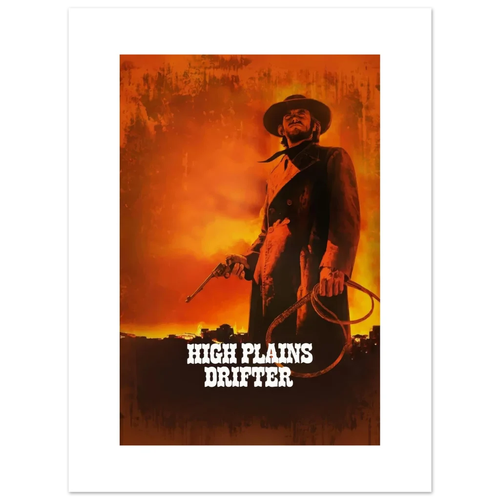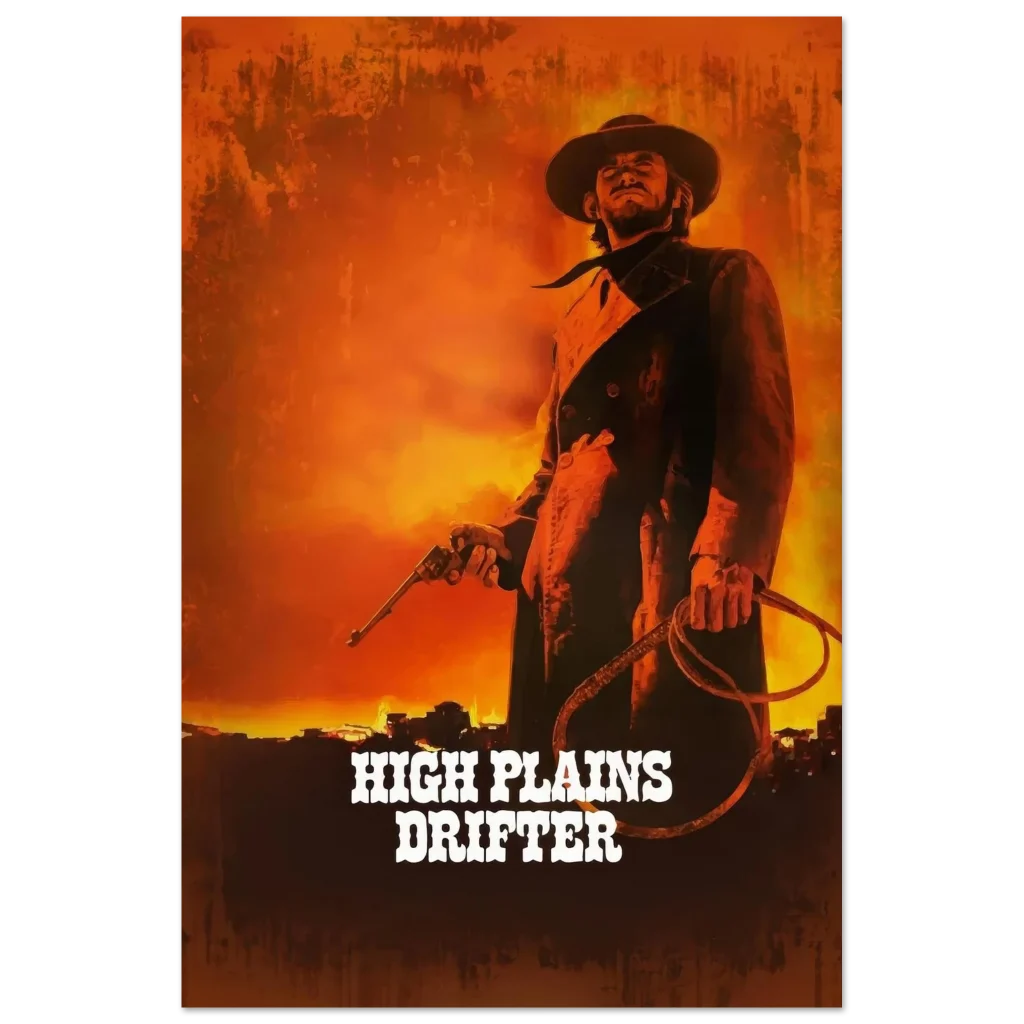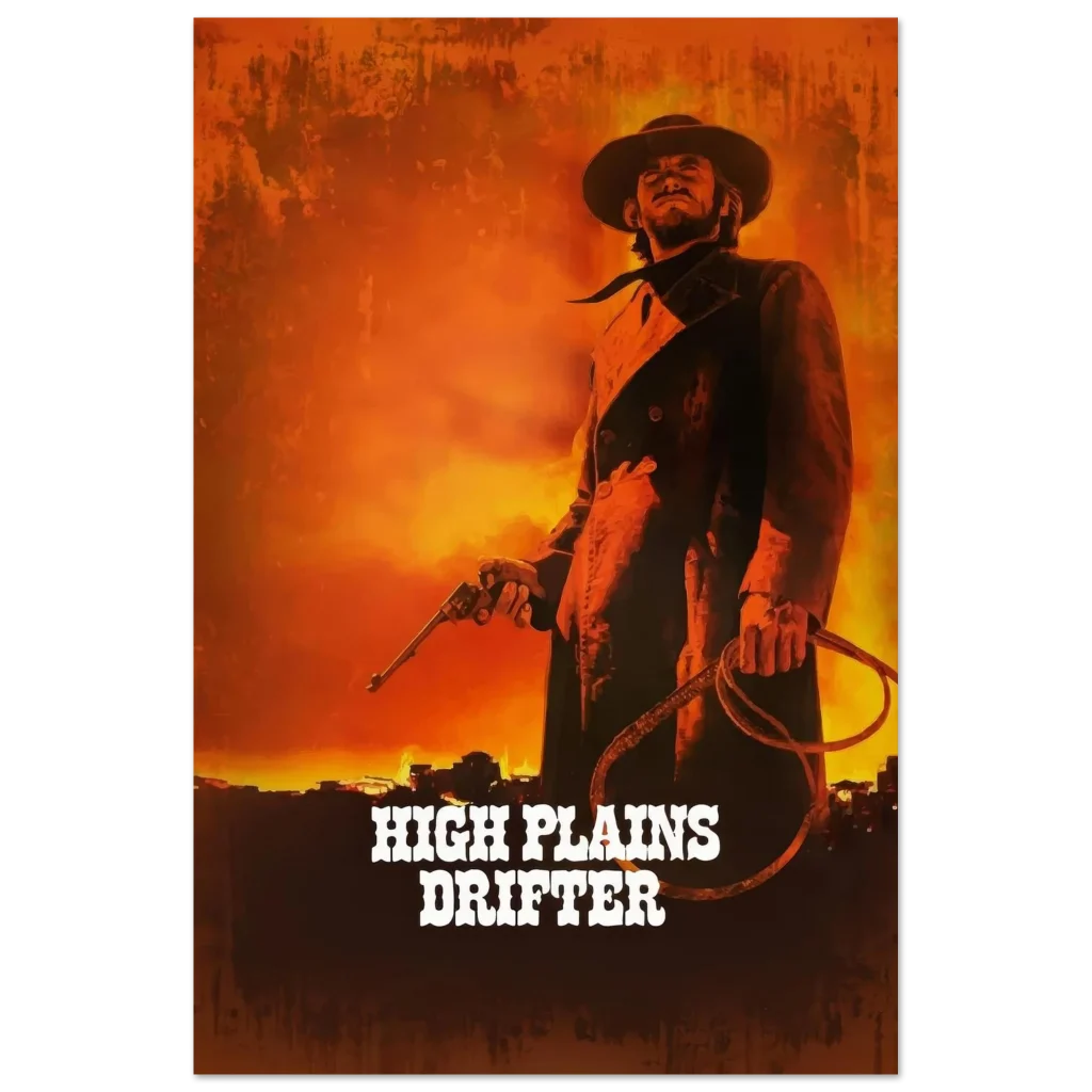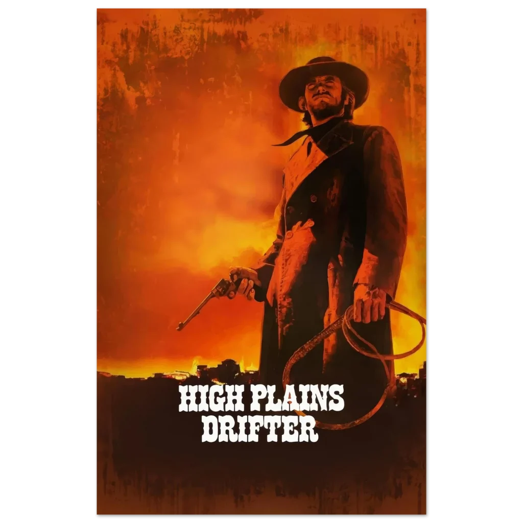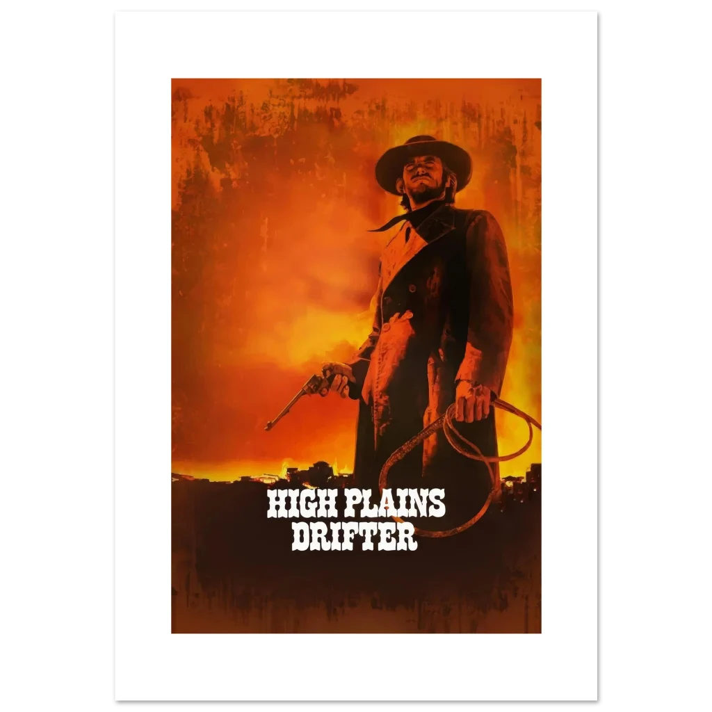 High Plains Drifter – Classic Western Movie Poster with Fiery Hues