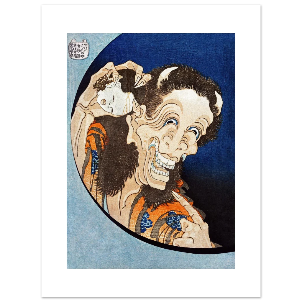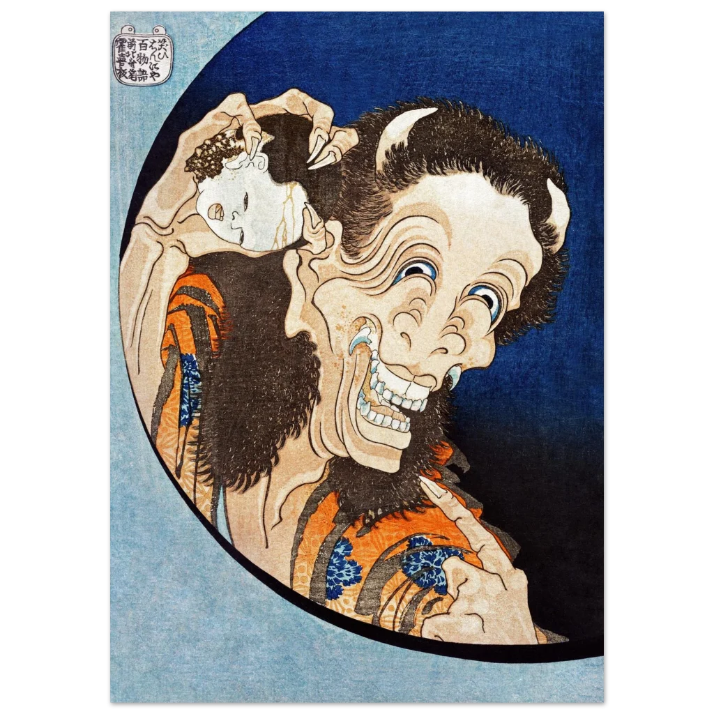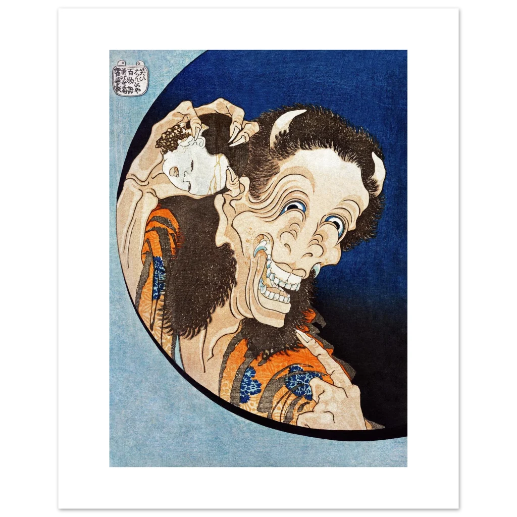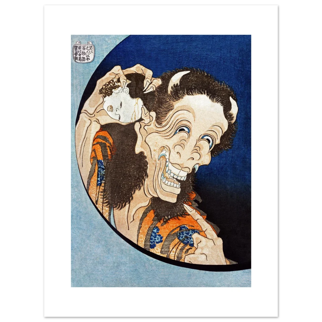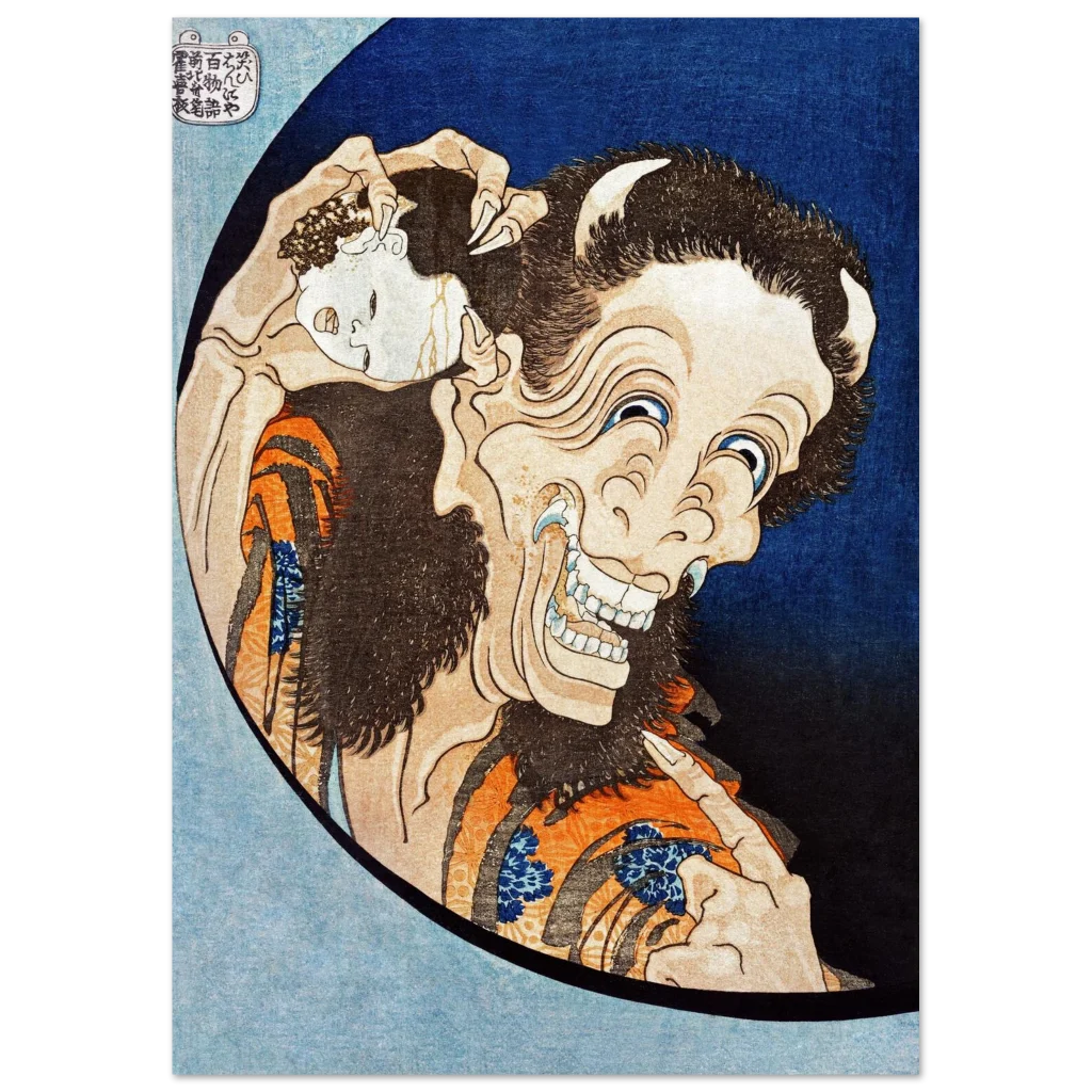 Hokusai’s Laughing Hannya Mask Ukiyo-e Poster | Premium Matte Paper Japanese Art Print