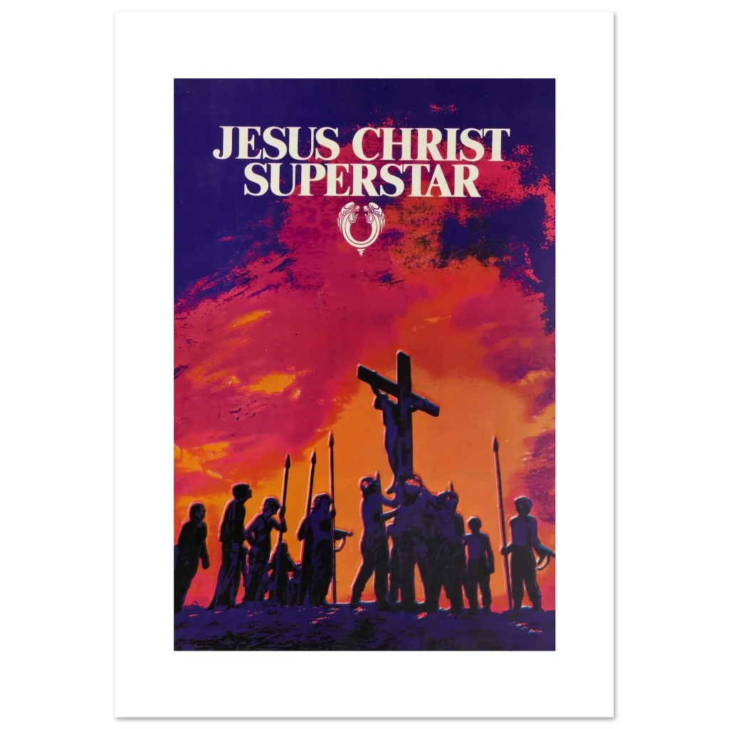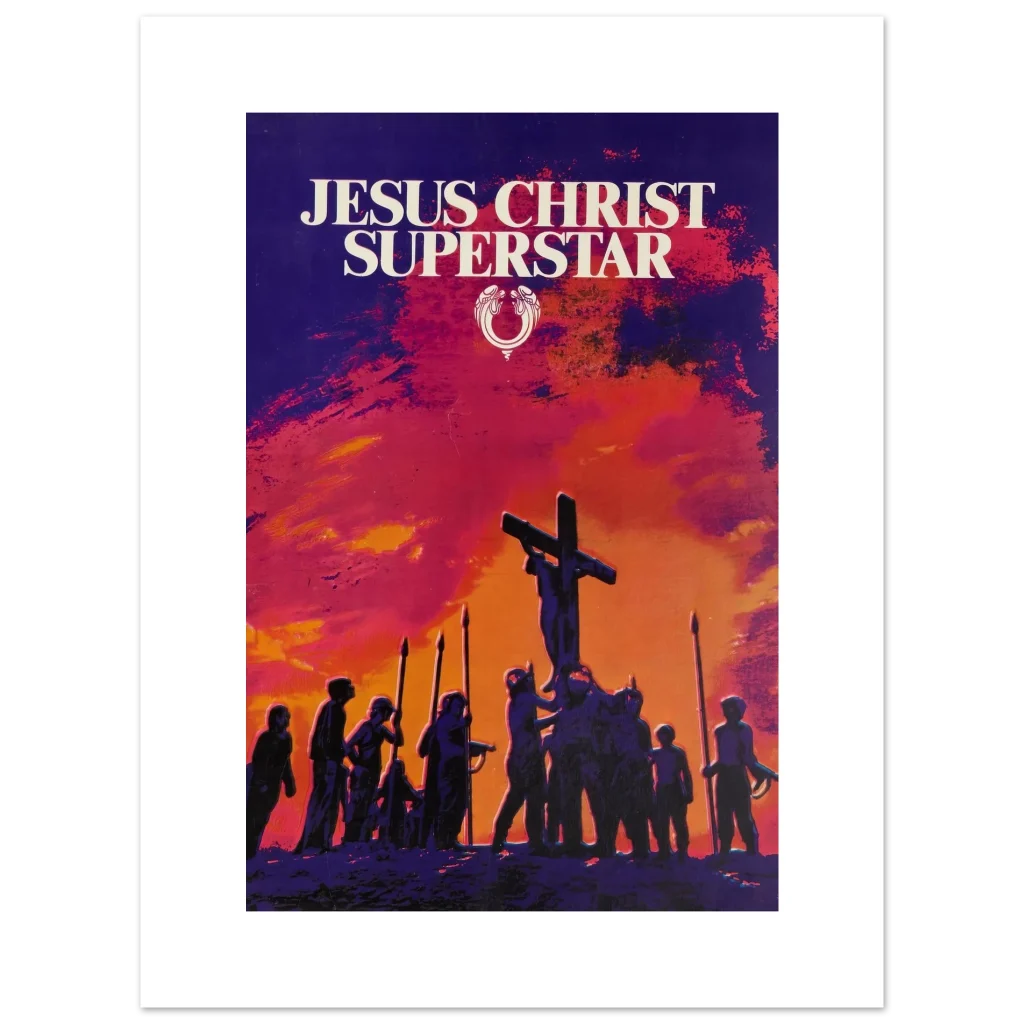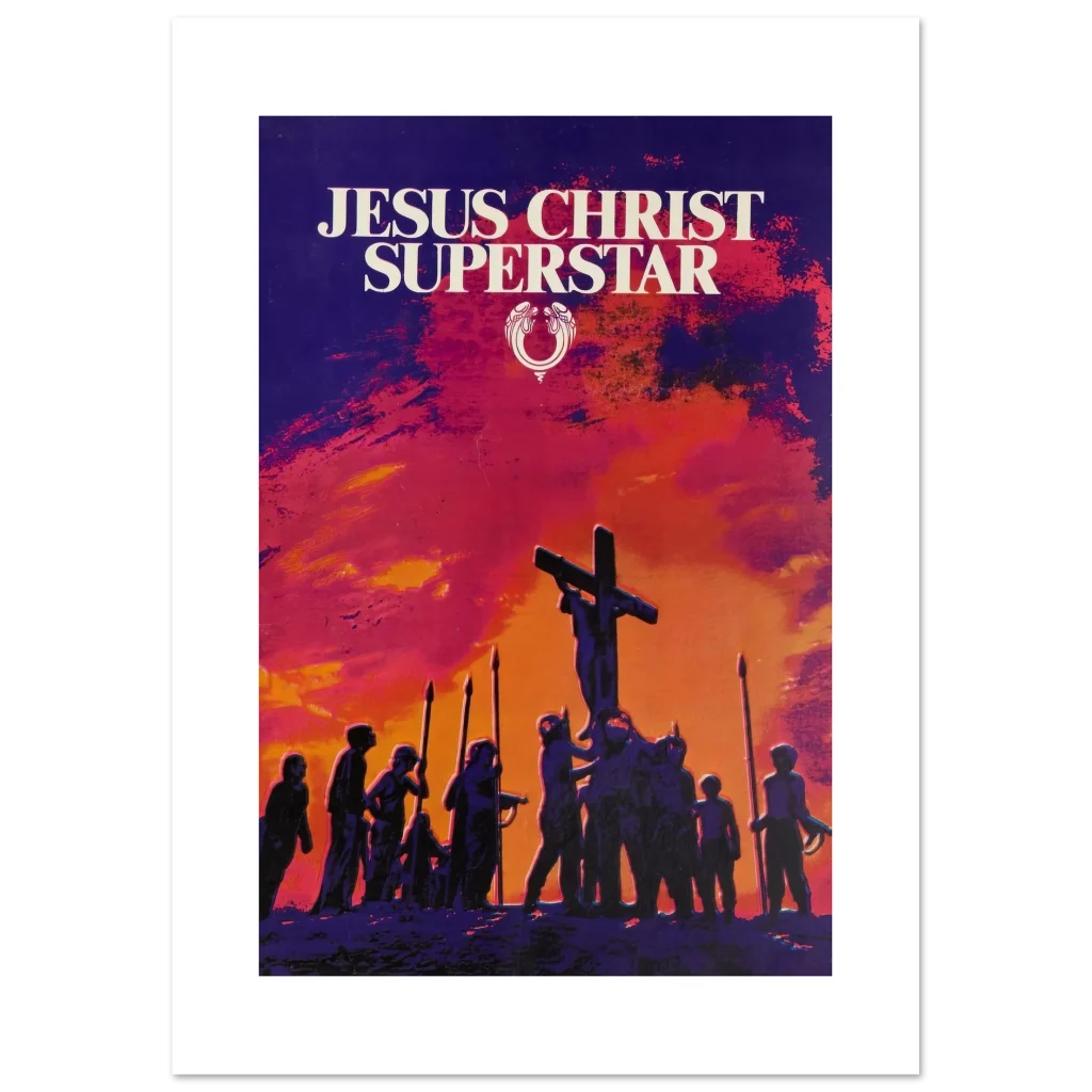 Capture the dramatic essence of a cultural phenomenon with our ‘Jesus Christ Superstar’ poster. This artwork, with its striking sunset palette of fiery oranges, deep reds, and brooding purples, brings the powerful visual storytelling of the iconic musical to life. Perfect for theatre enthusiasts, music lovers, or anyone seeking a piece of art that evokes emotion and history, this poster promises to be a captivating focal point in any room.