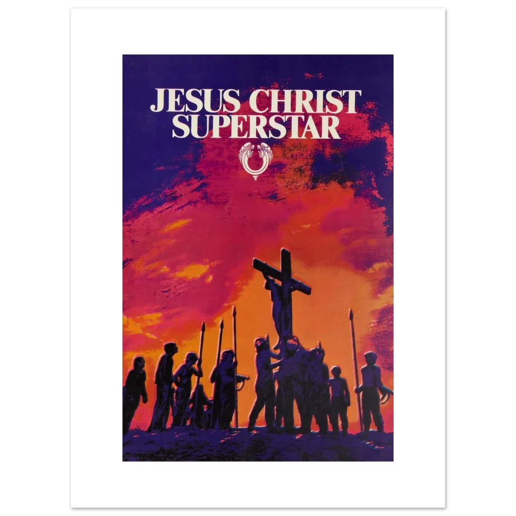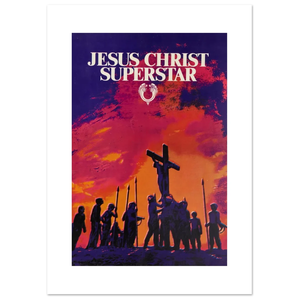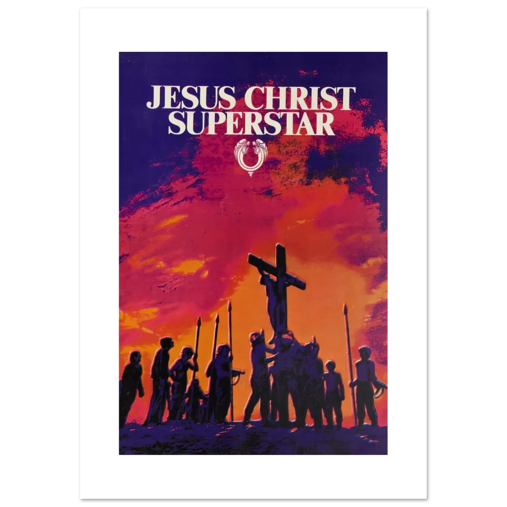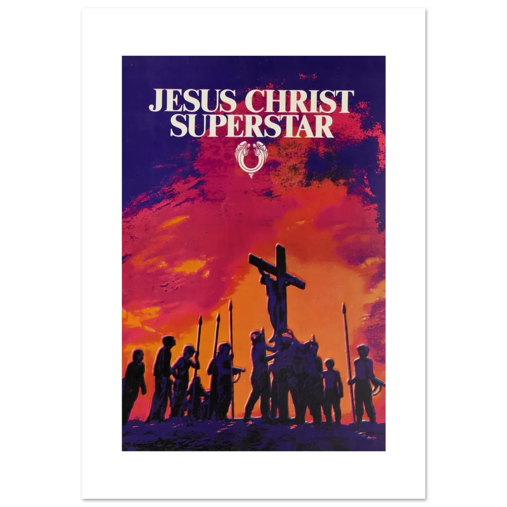 Capture the dramatic essence of a cultural phenomenon with our ‘Jesus Christ Superstar’ poster. This artwork, with its striking sunset palette of fiery oranges, deep reds, and brooding purples, brings the powerful visual storytelling of the iconic musical to life. Perfect for theatre enthusiasts, music lovers, or anyone seeking a piece of art that evokes emotion and history, this poster promises to be a captivating focal point in any room.