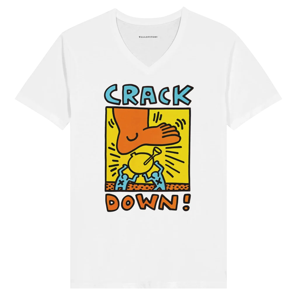 Keith Haring Crack Down! 1986 Anti-Drug Iconic Pop Art Premium Unisex V-Neck T-shirt