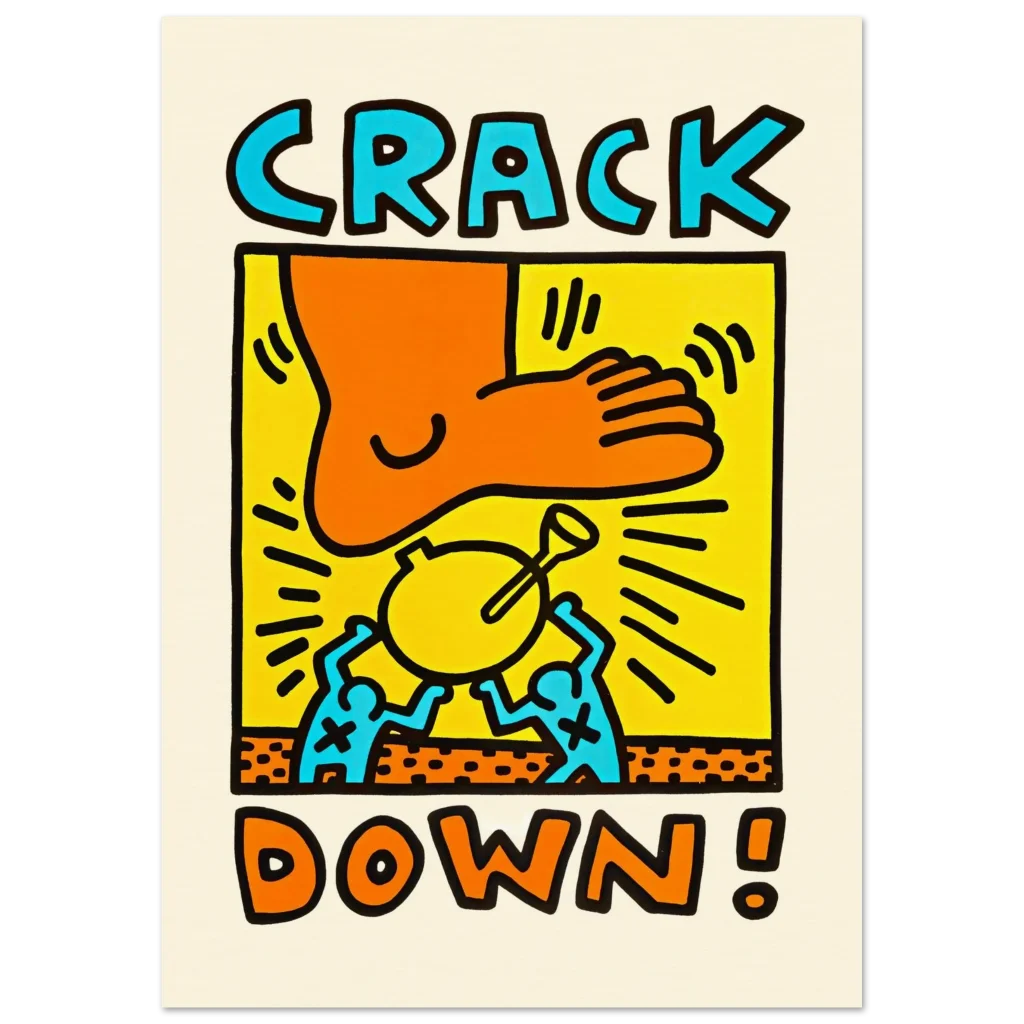Keith Haring “Crack Down!” Pop Art Illustration Wall Art