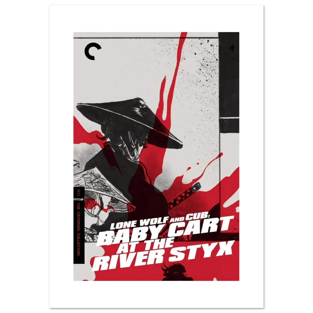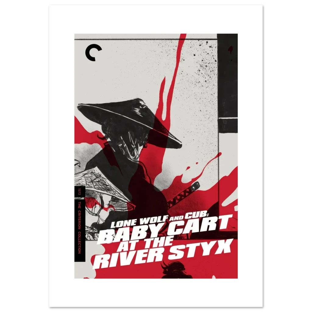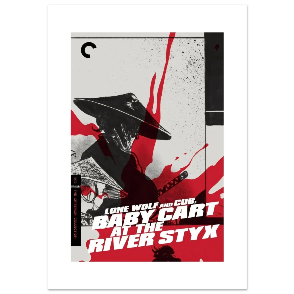 Immerse yourself in the gritty, iconic world of classic cinema with this striking poster for “Lone Wolf and Cub: Baby Cart at the River Styx.” Featuring a bold, graphic aesthetic dominated by stark black, white, and powerful crimson splashes, this artwork captures the dramatic essence of the samurai epic. It’s a must-have for film aficionados and lovers of graphic novel-inspired art.
