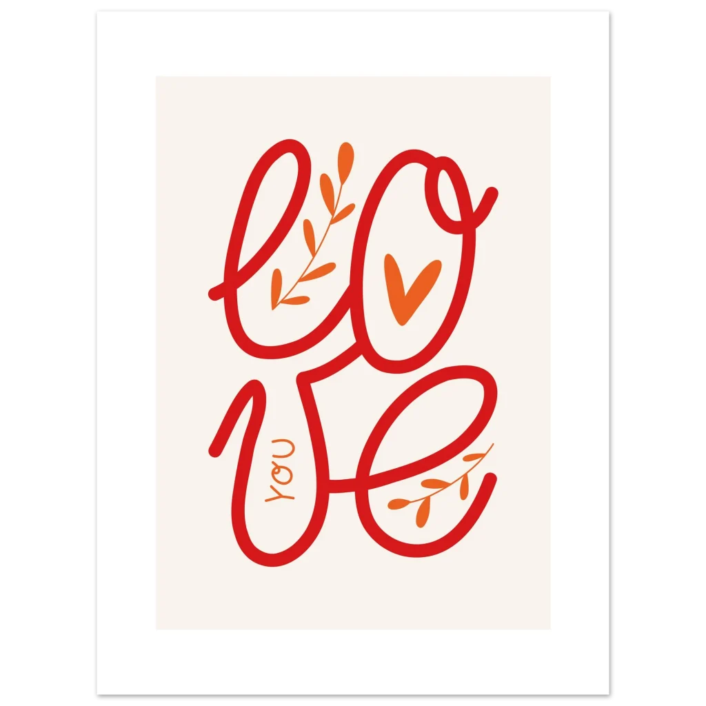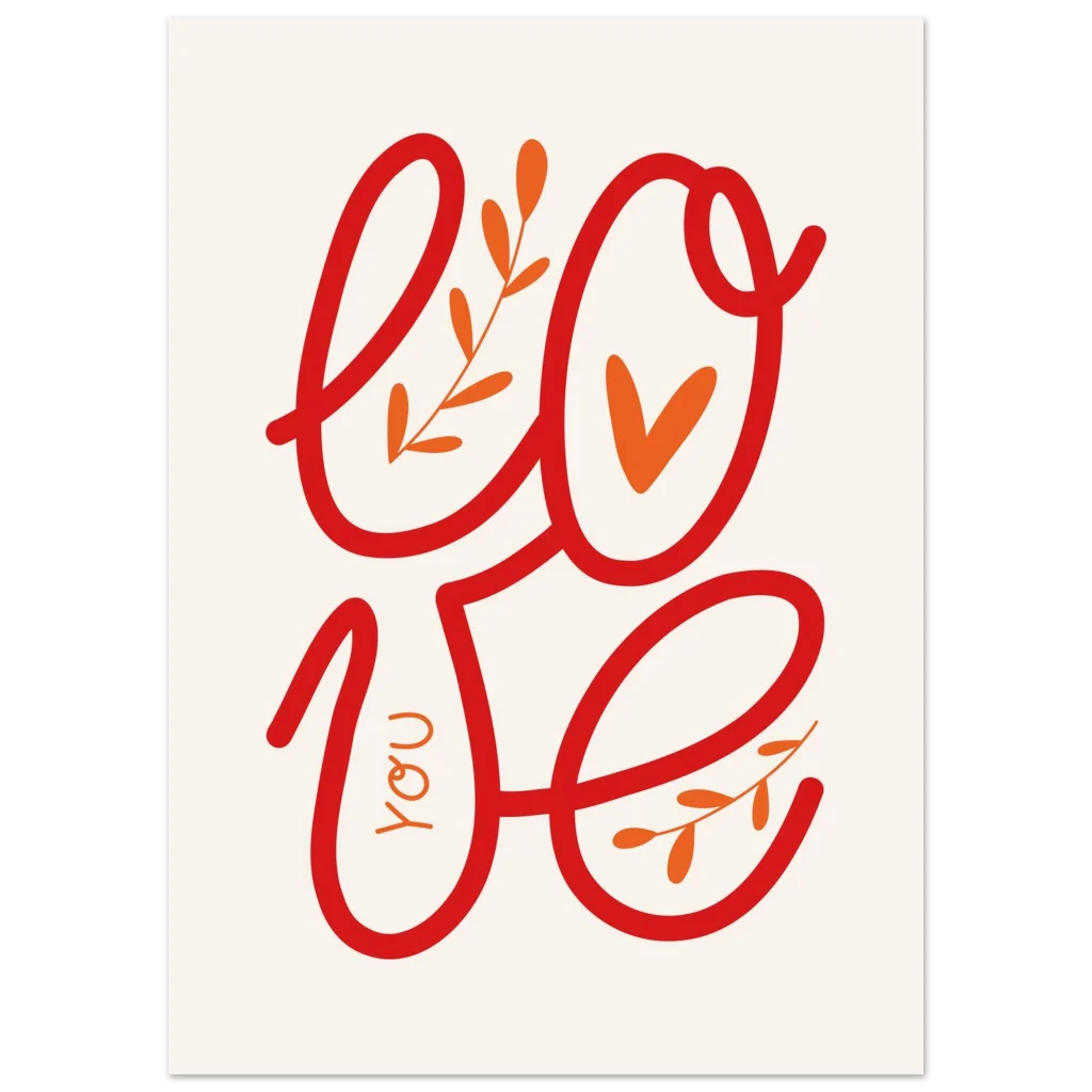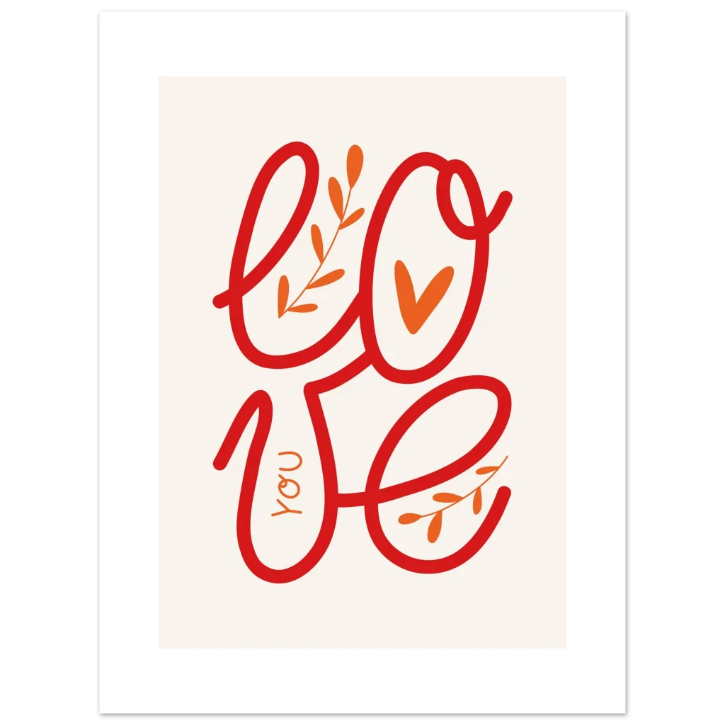 Love You Script Botanical Poster – Premium Matte Paper Print for Romantic Home Decor