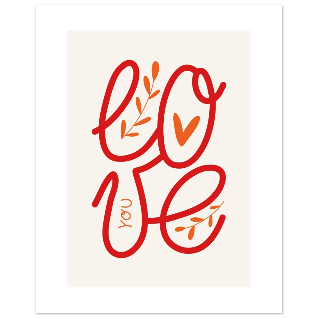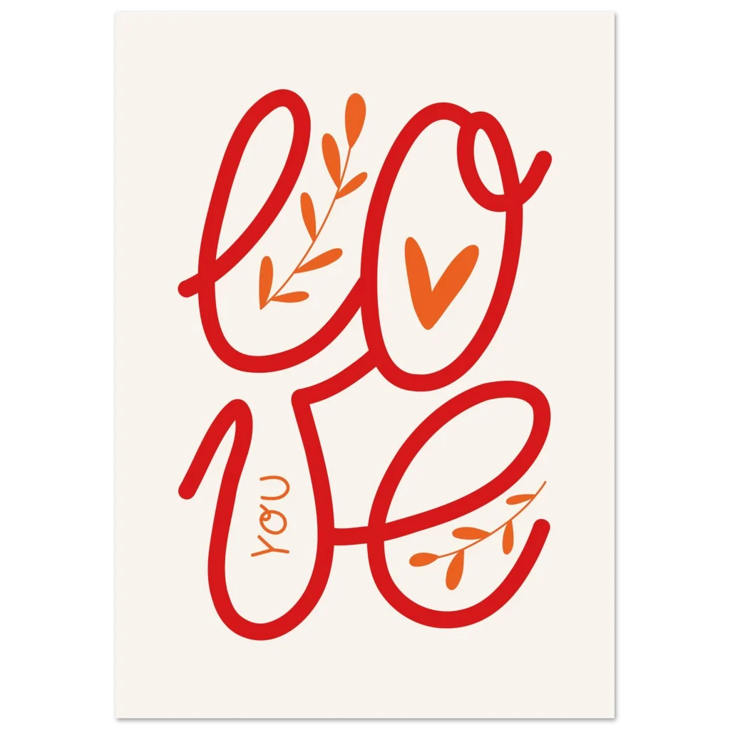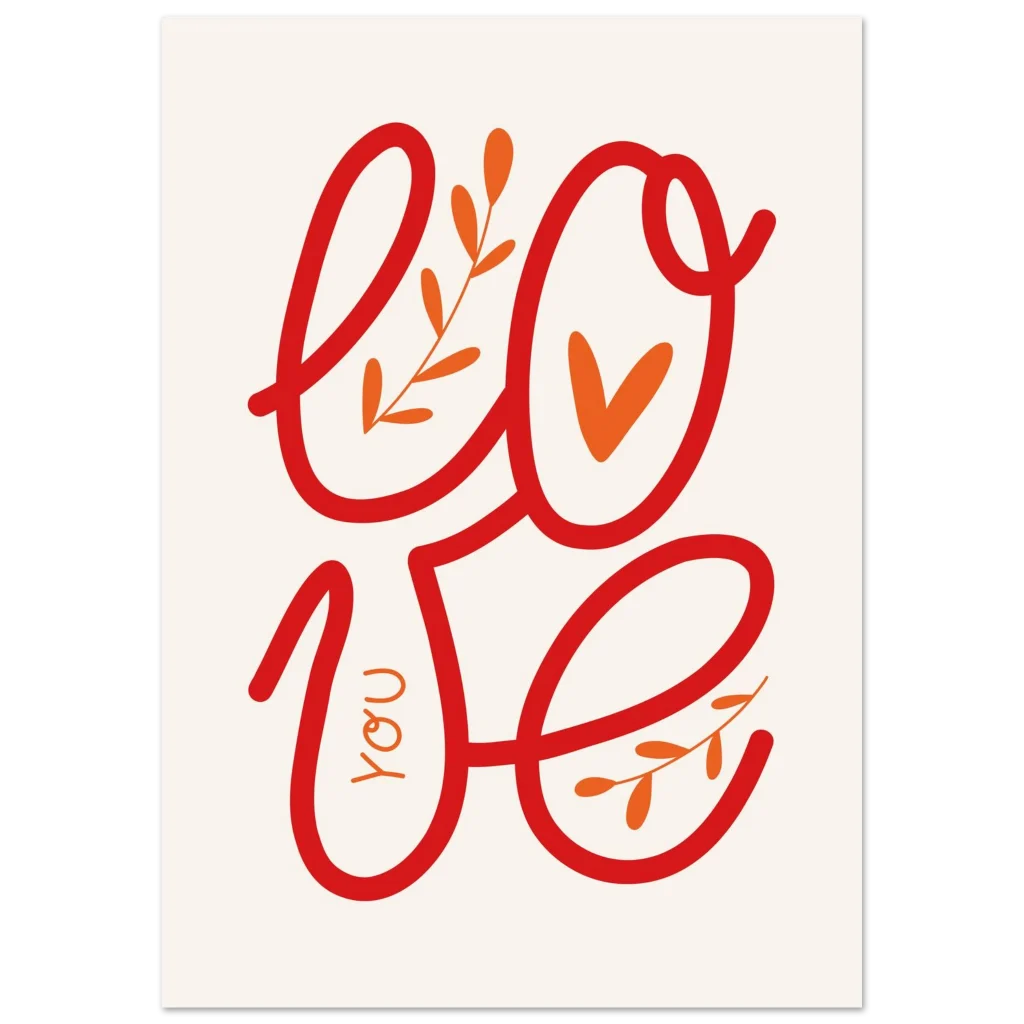 Love You Script Botanical Poster – Premium Matte Paper Print for Romantic Home Decor