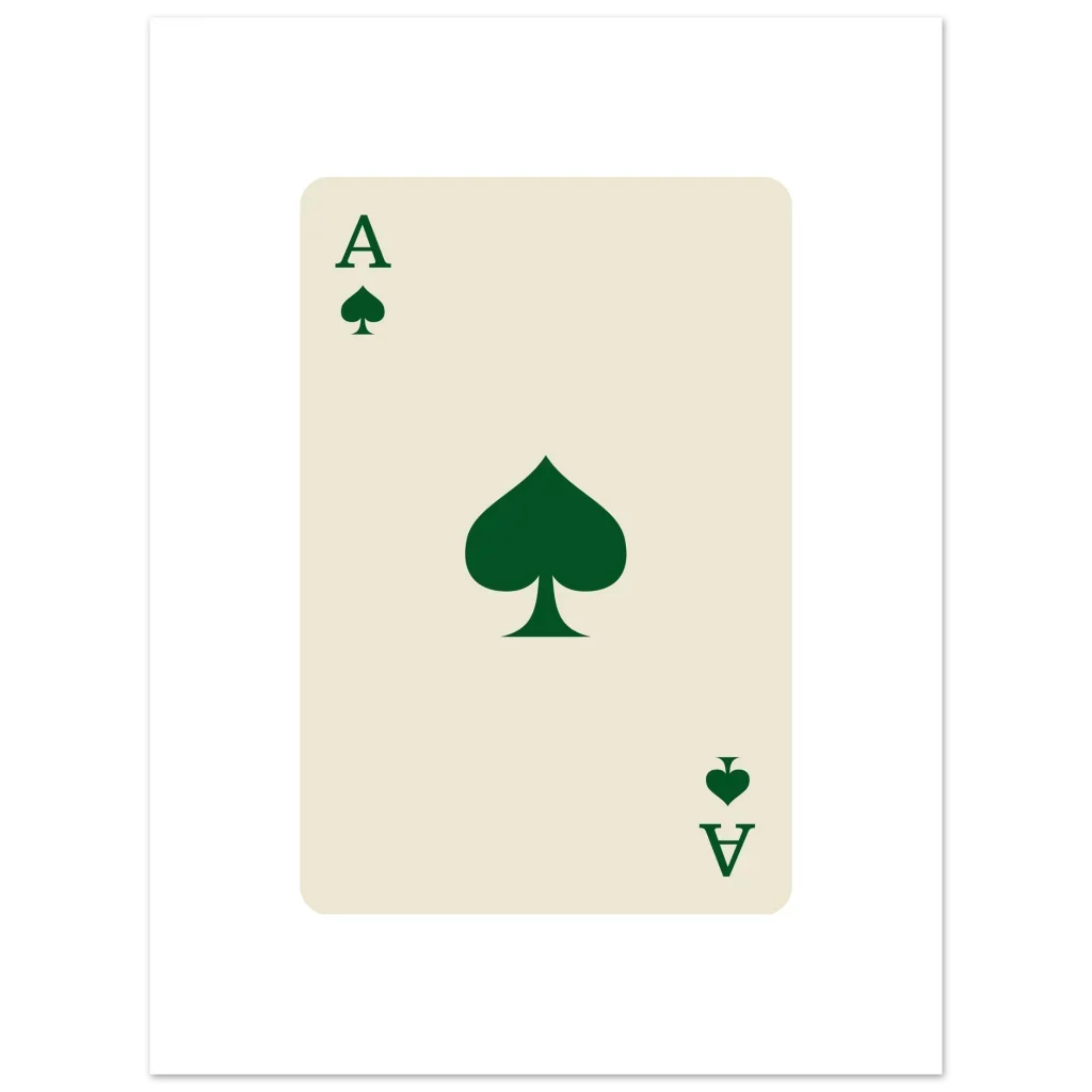 Minimalist Ace of Spades Card Art Poster – Deep Green & Cream Classic Semi-Glossy Print