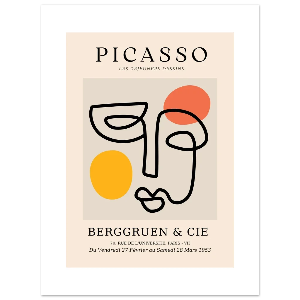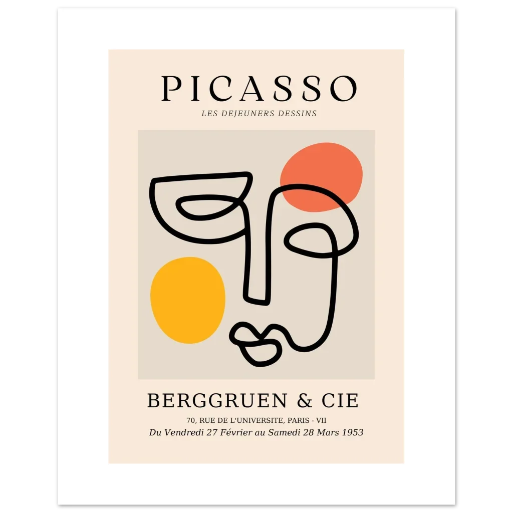 Bring a touch of modern artistry and timeless sophistication into your home with our exclusive Picasso-inspired abstract line art poster. Featuring a captivating single-line face illustration set against a warm, neutral background with vibrant pops of orange and yellow, this piece offers a chic, minimalist aesthetic that complements any contemporary space.