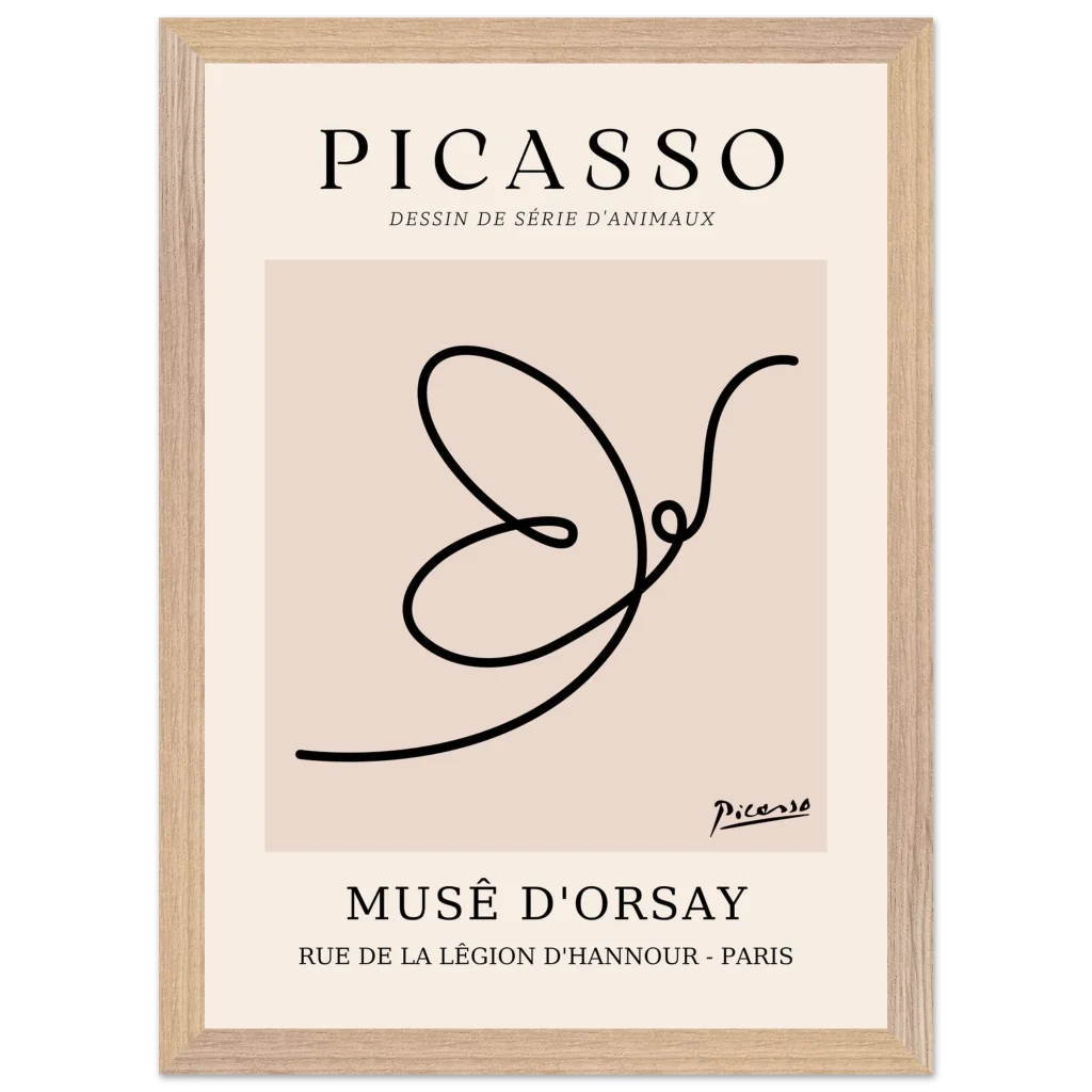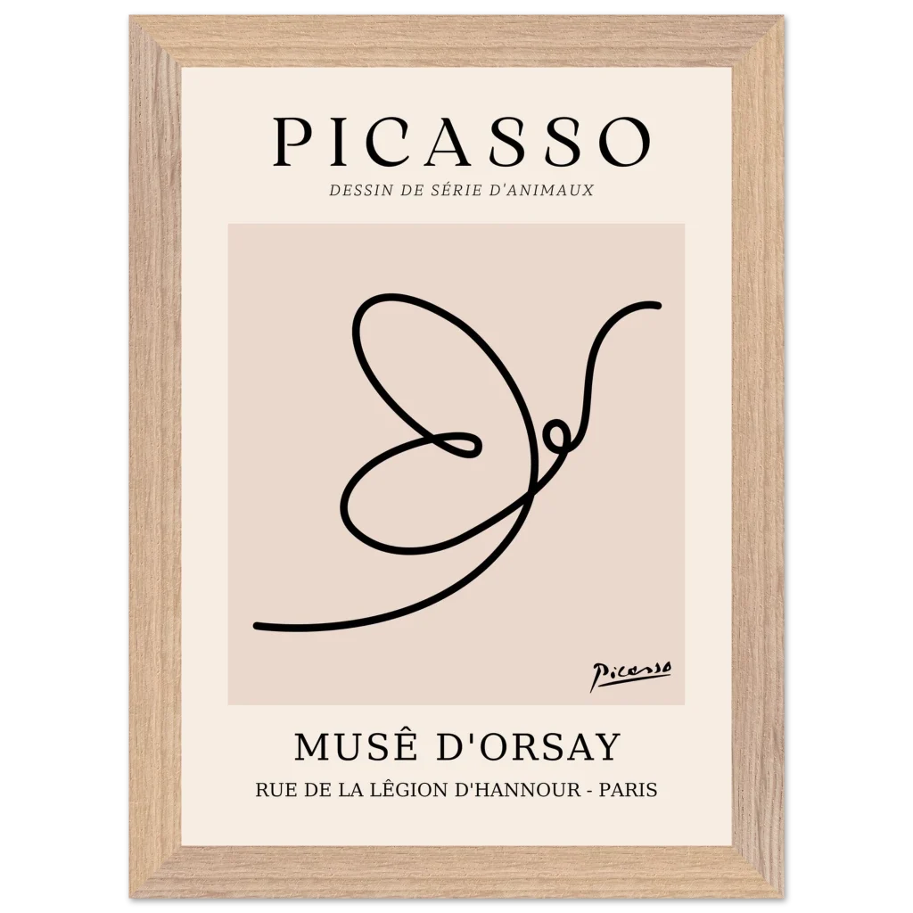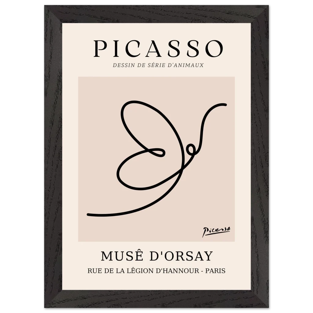 Minimalist Picasso Dove Line Art Poster – French Exhibition Wall Art in Premium Wooden Frame