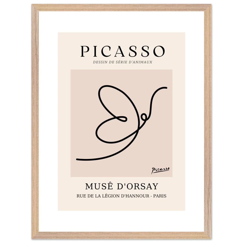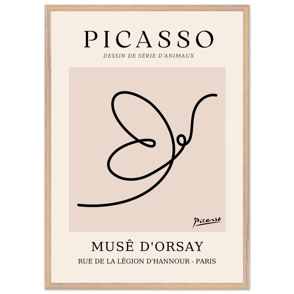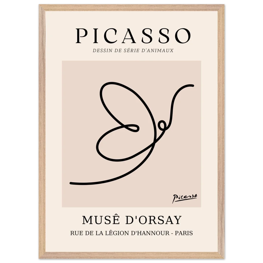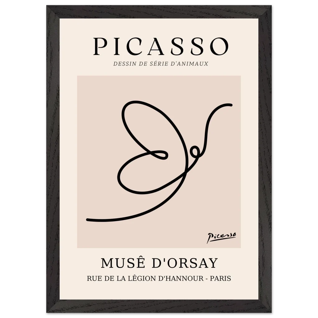 Minimalist Picasso Dove Line Art Poster – French Exhibition Wall Art in Premium Wooden Frame