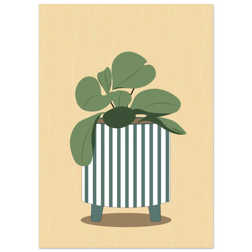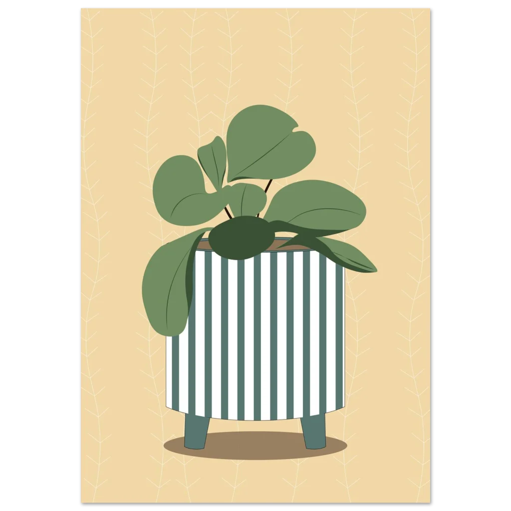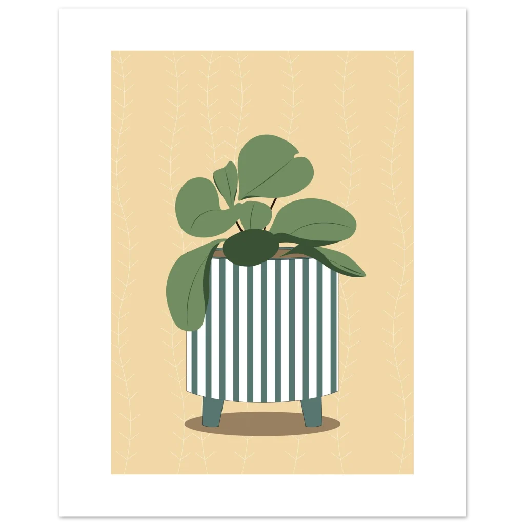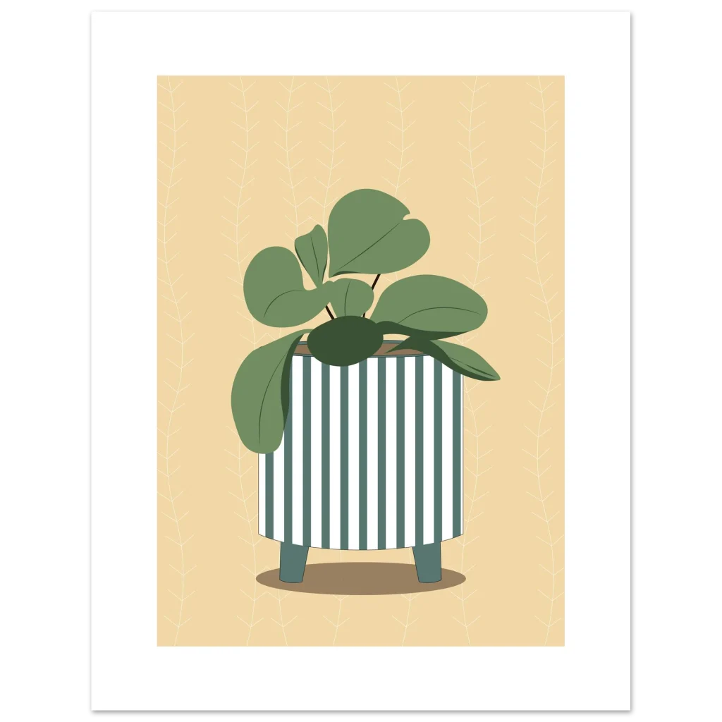 Minimalist Plant Pot Art Print: Greenery & Stripes Matte Paper Poster in Various Sizes