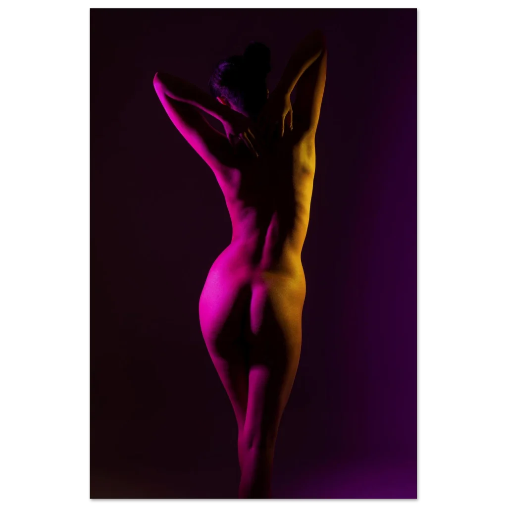 Neon Serenity: Striking Dual-Tone Abstract Nude Art Print on Museum-Quality Matte Paper Poster