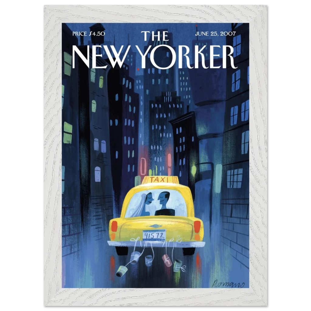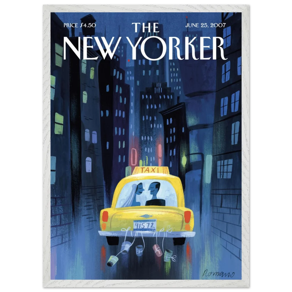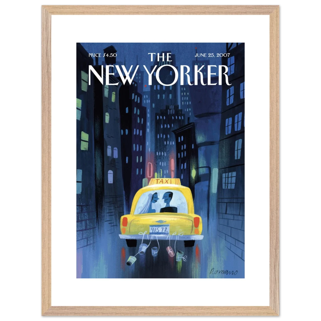 New York City Wedding Taxi Art Print – Romantic Urban Love Story Premium Framed Poster in Multiple Sizes & Frame Colors