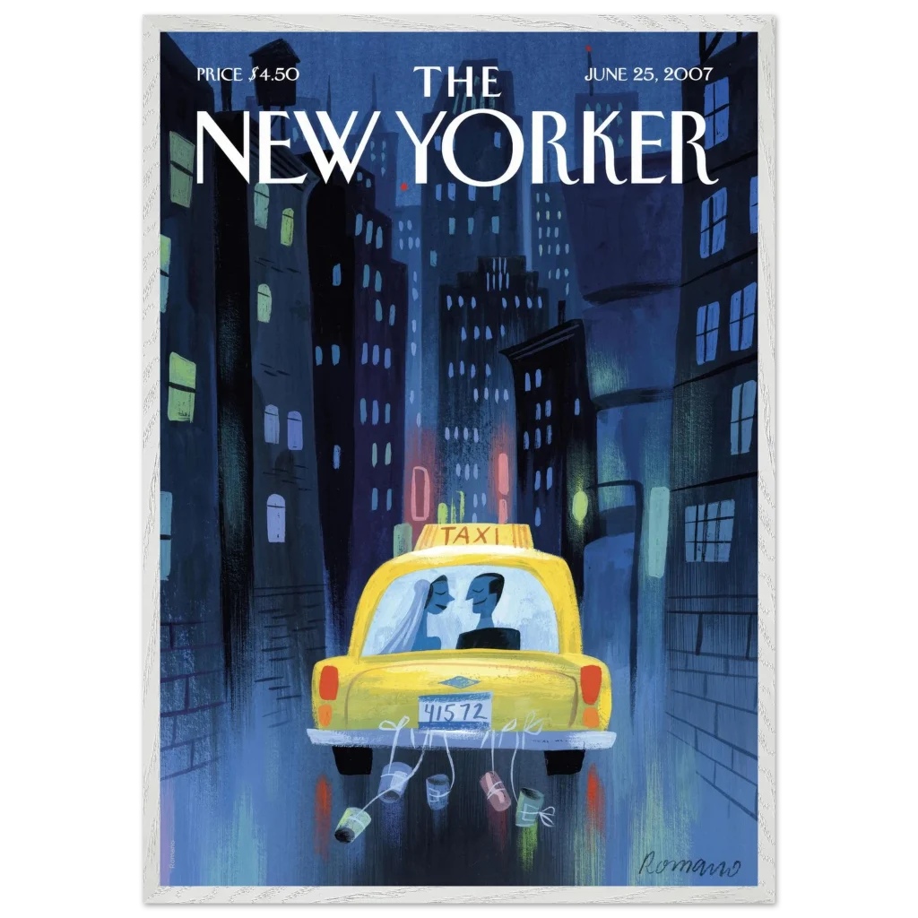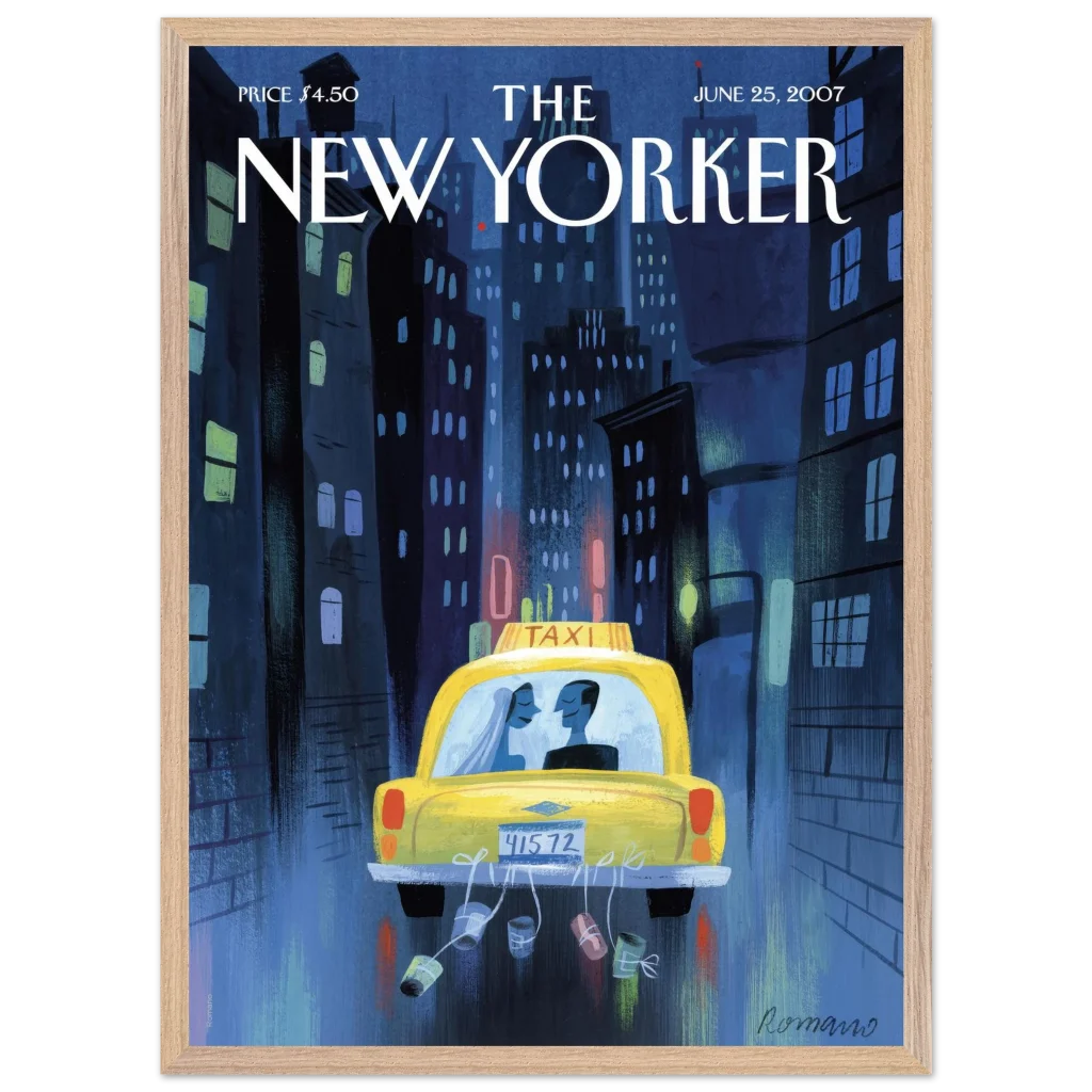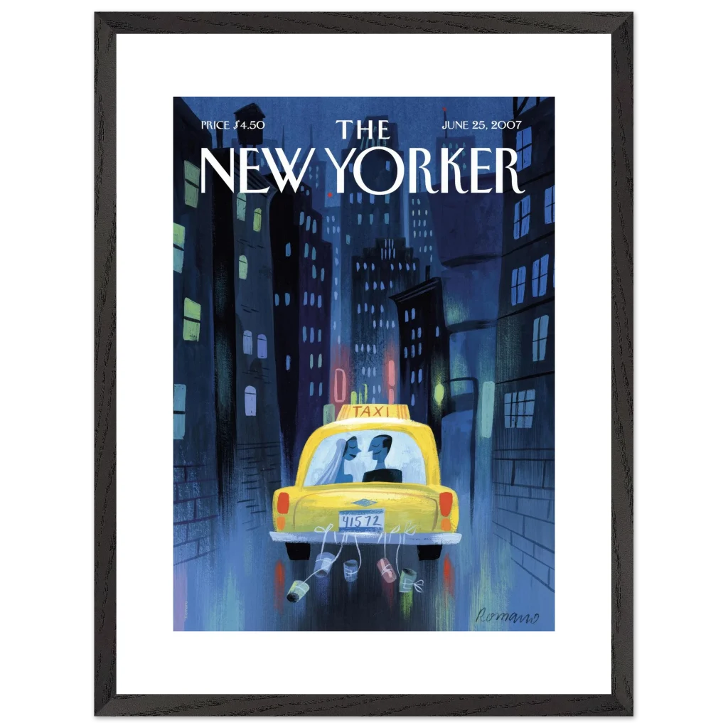 New York City Wedding Taxi Art Print – Romantic Urban Love Story Premium Framed Poster in Multiple Sizes & Frame Colors