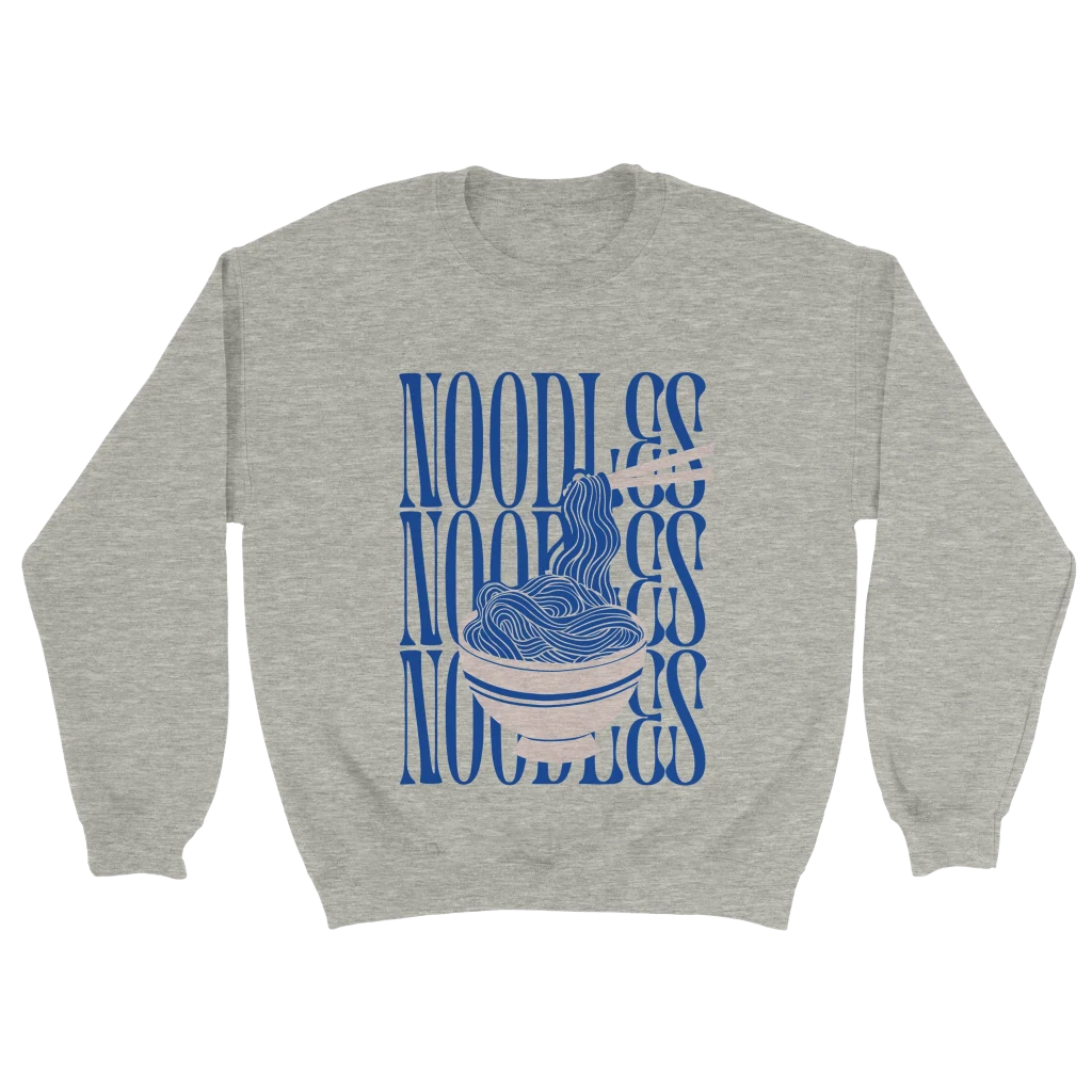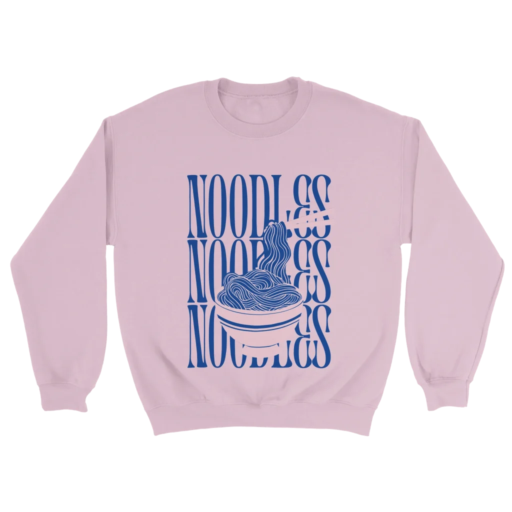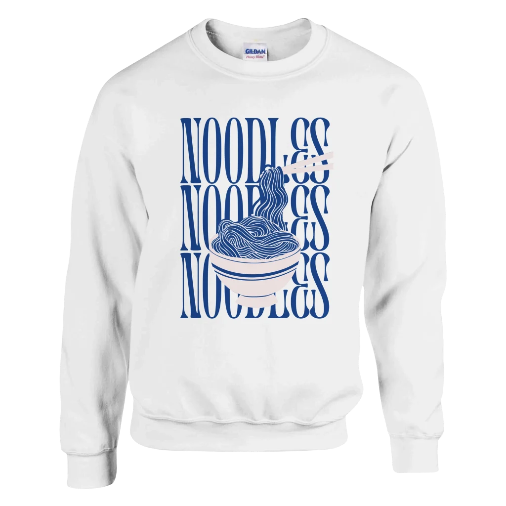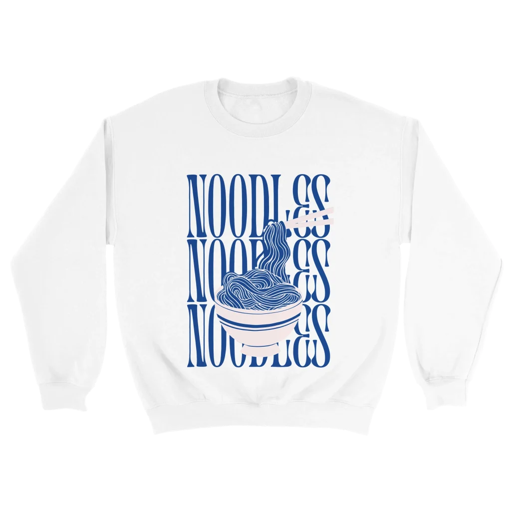 Indulge in comfort and showcase your love for everyone’s favorite meal with our Noodle Lovers’ Classic Crewneck Sweatshirt. Featuring a playful, modern graphic of noodles in a bowl with chopsticks, this design brings a vibrant pop of blue and pink to your everyday style. It’s the perfect statement piece for foodies and those who appreciate unique, eye-catching apparel.