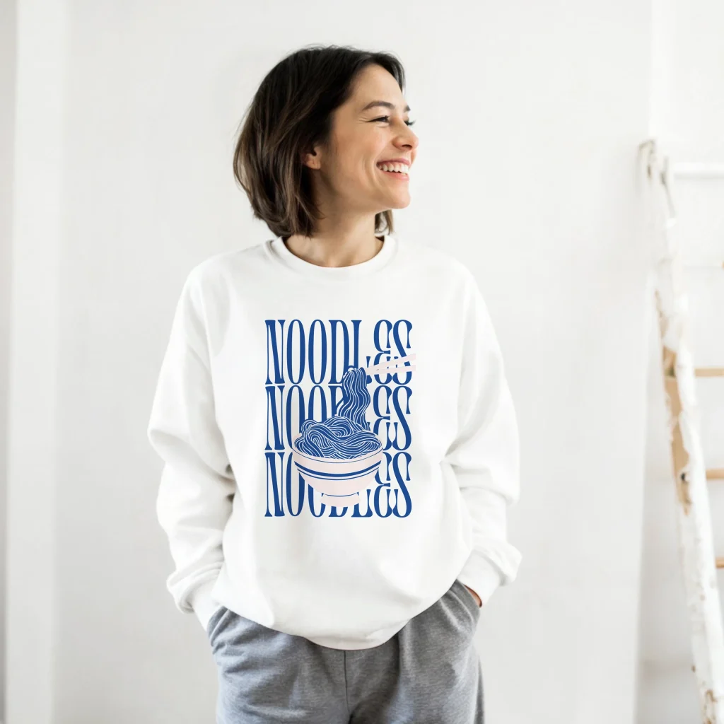 Choose your perfect expression of style and comfort. Available in a palette of versatile hues including White, Ash, Light Pink, Sand, and Gold, and in an inclusive range of sizes from S to 5XL. Embrace your noodle obsession in comfort and flair – select your favorite color and size today to make this unique sweatshirt yours!