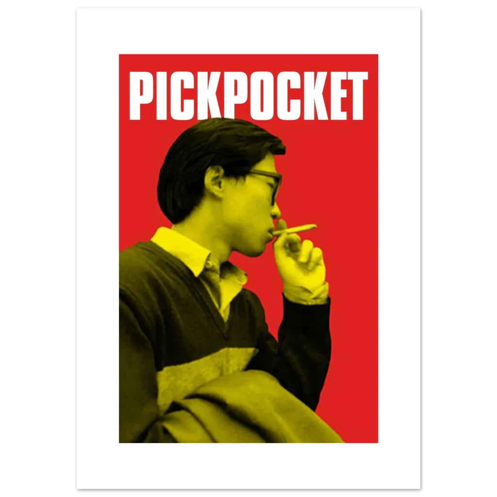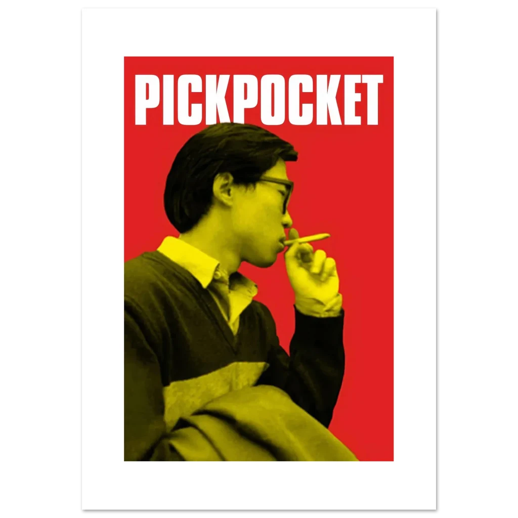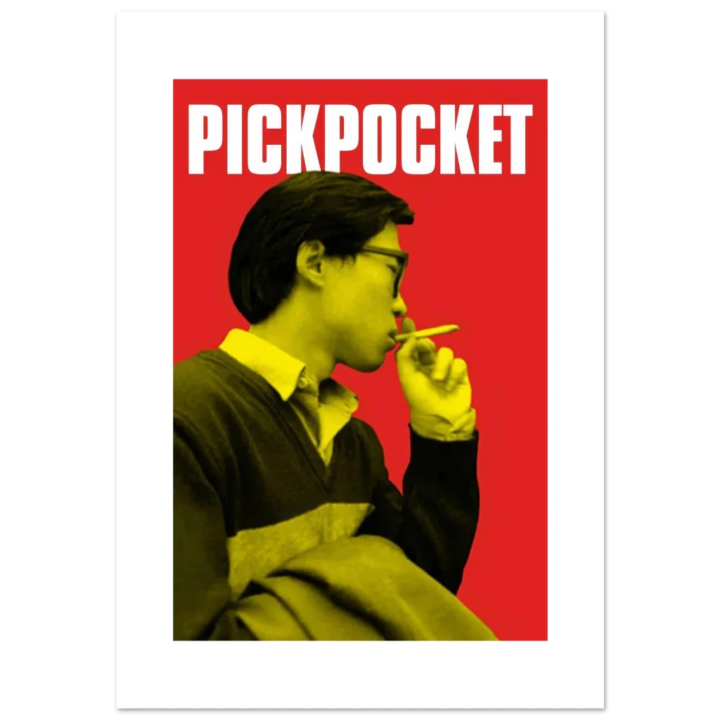 Capture the essence of classic cinema with our ‘Pickpocket’ inspired art print, featuring a striking visual in a bold red and yellow palette. This poster brings a touch of intriguing, retro-cool style to any space, making it perfect for film enthusiasts and those who appreciate minimalist design with maximum impact.